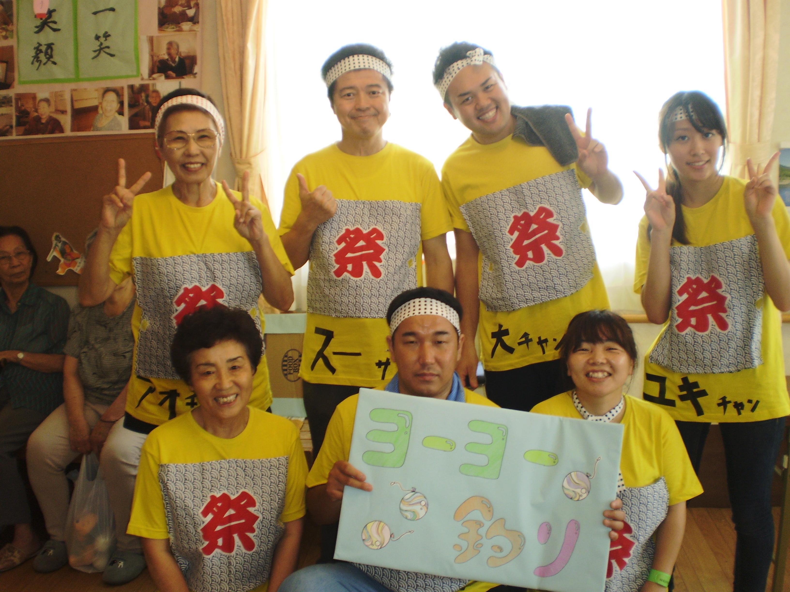 あじさい職員は、手作りの衣装でお祭りを盛り上げました。」