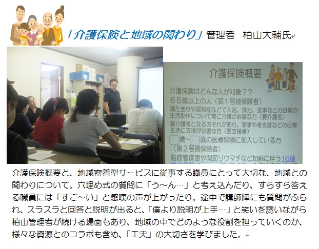 2コマ目は 柏山管理者の「介護保険と地域の関わり」