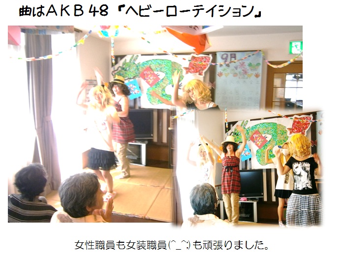 数年前の敬老会の日も安藤主任は張り切って「女装職員」で参加され、