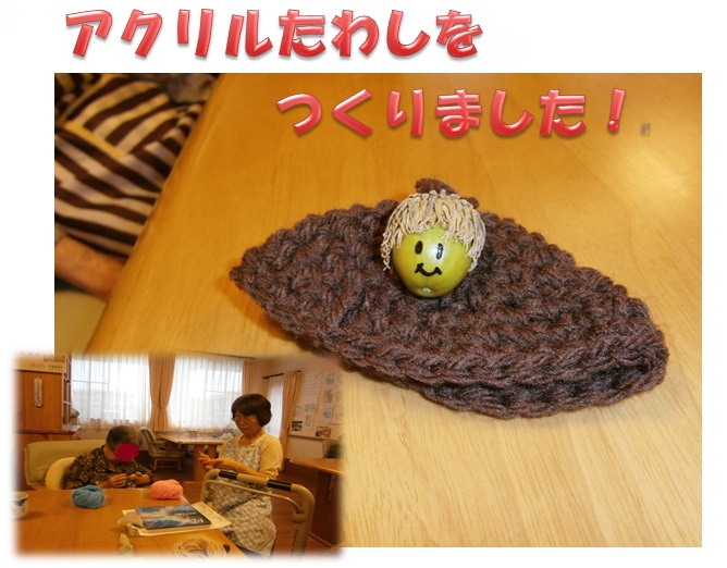 ご利用者様と一緒にアクリルたわしを作りました。