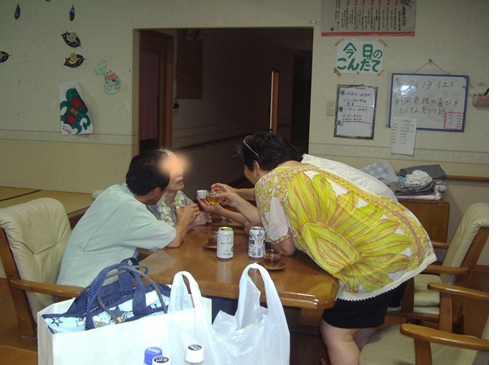 ご家族が集まり、お母様を囲み、お酒を飲まれています。