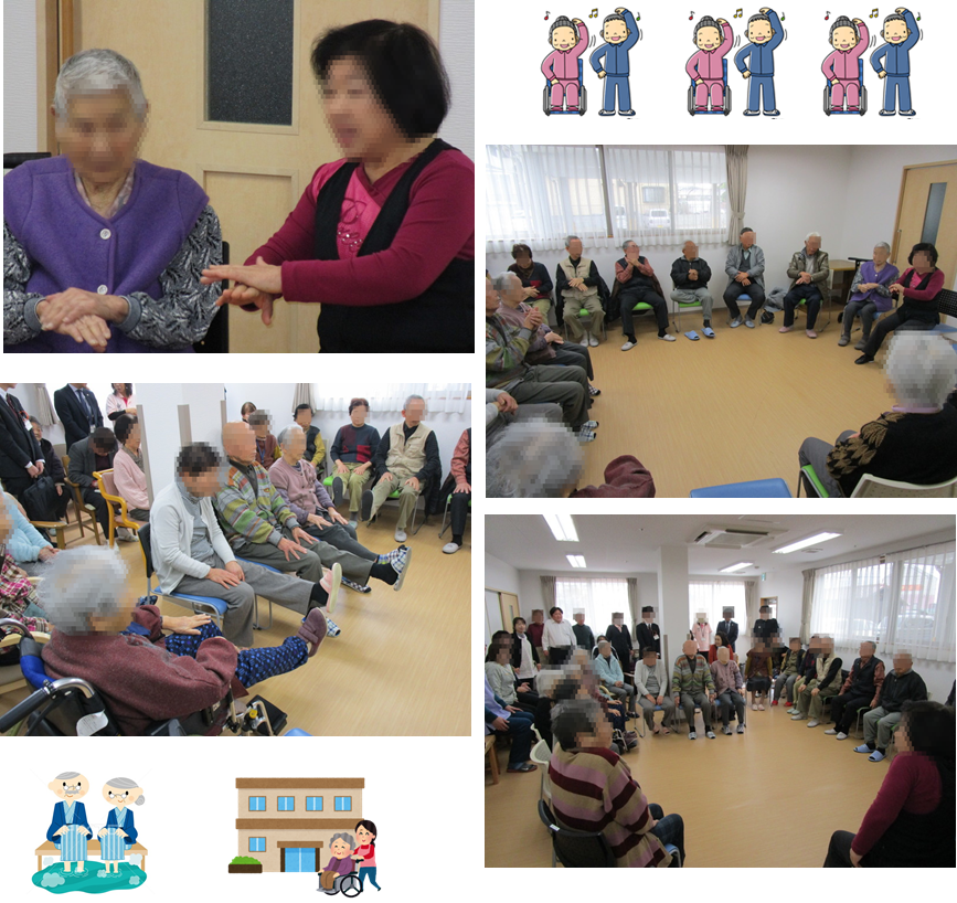 近隣住民様をはじめ管轄行政様、当日あじさい「ふじまつ」を利用された小規模のご利用者様等、総勢30名を超える方々にお集まり頂き、健康体操の先生指導の元、ユーモアを交えながら1時間近く健康体操を行いました。