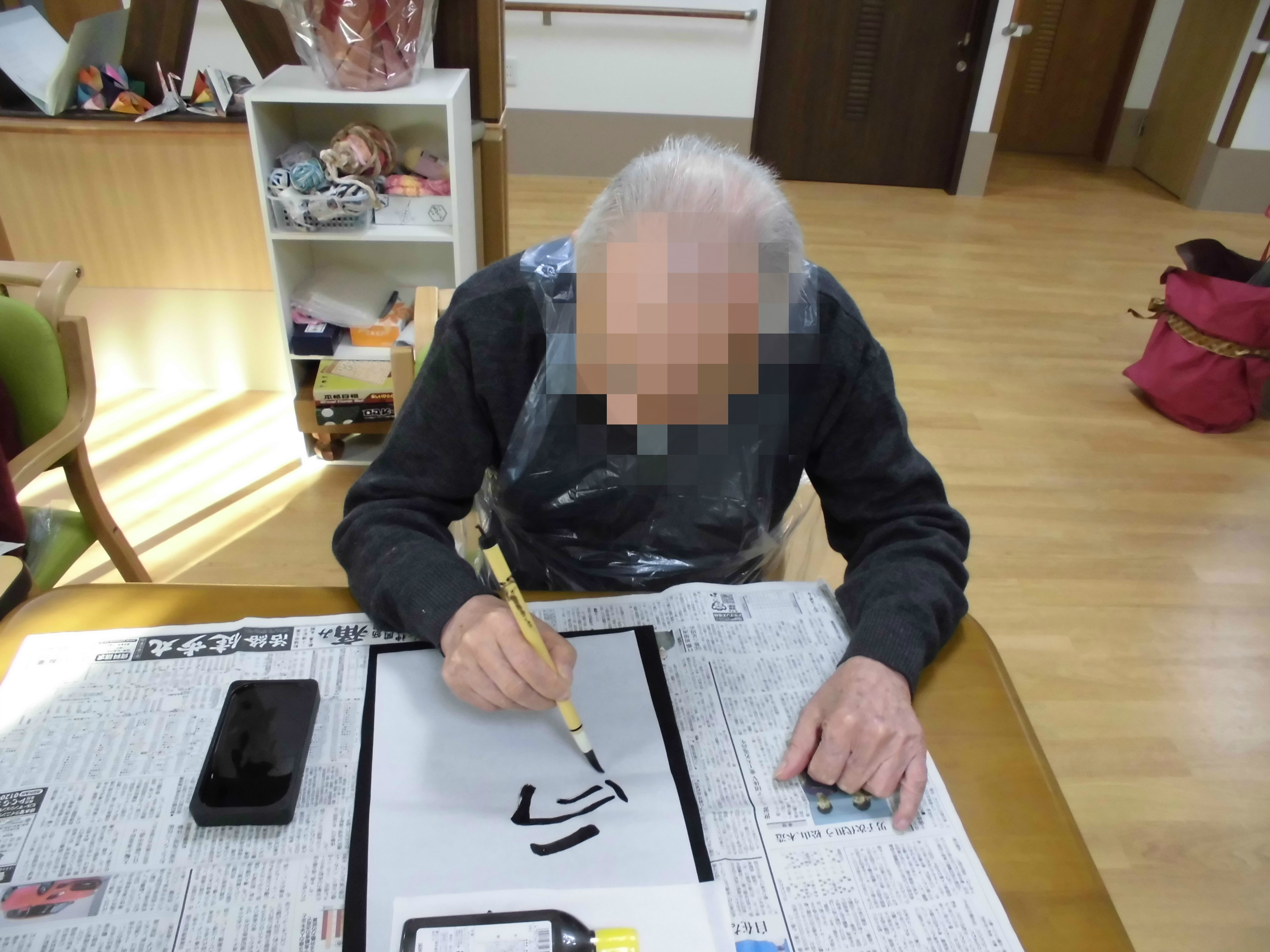 初めは「私はいいわあ・・・」と遠慮していた入居者様。いざ筆をもつと