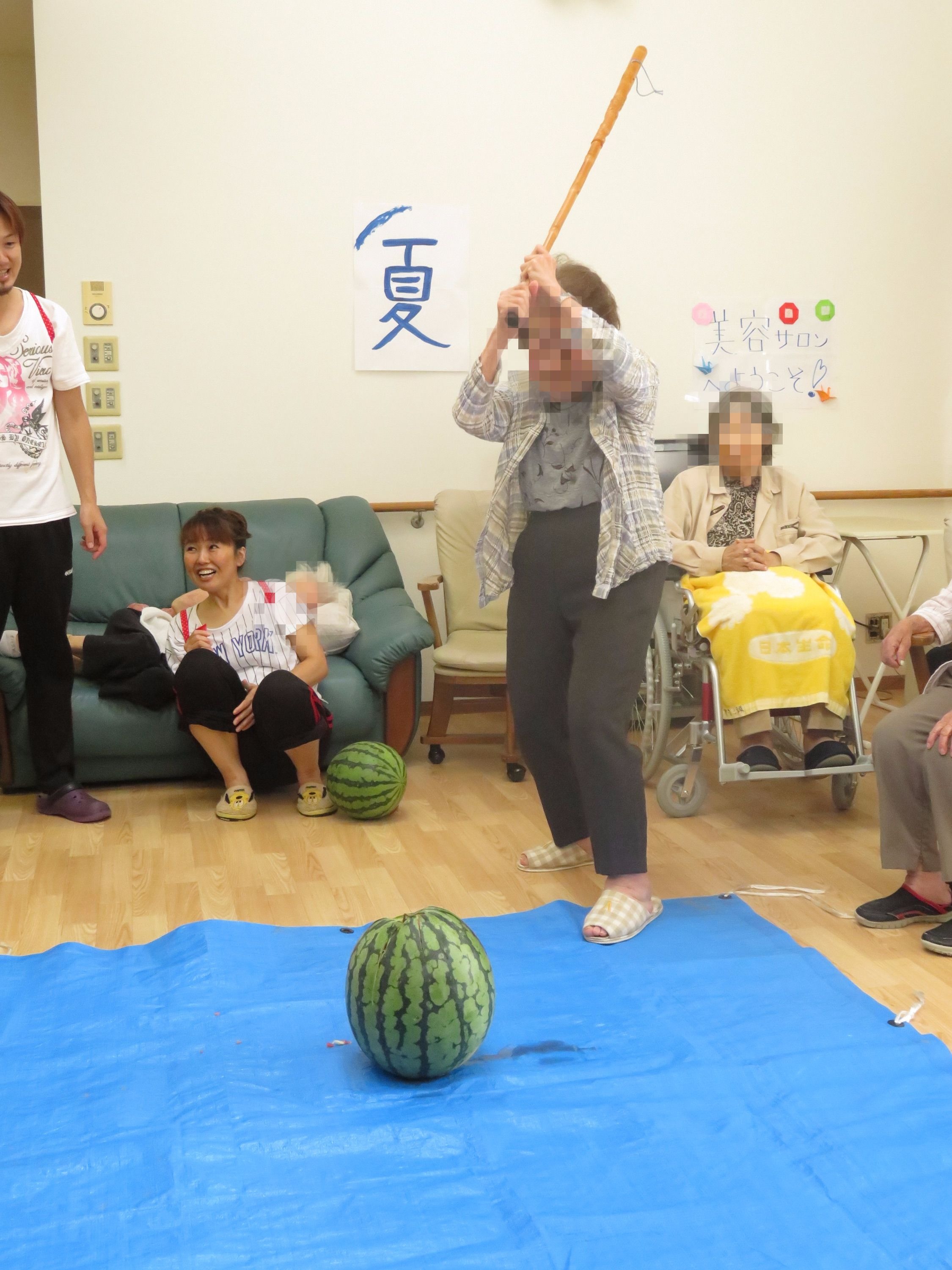 力のあるご利用者様もいて、すごい音と共にスイカが割れることも