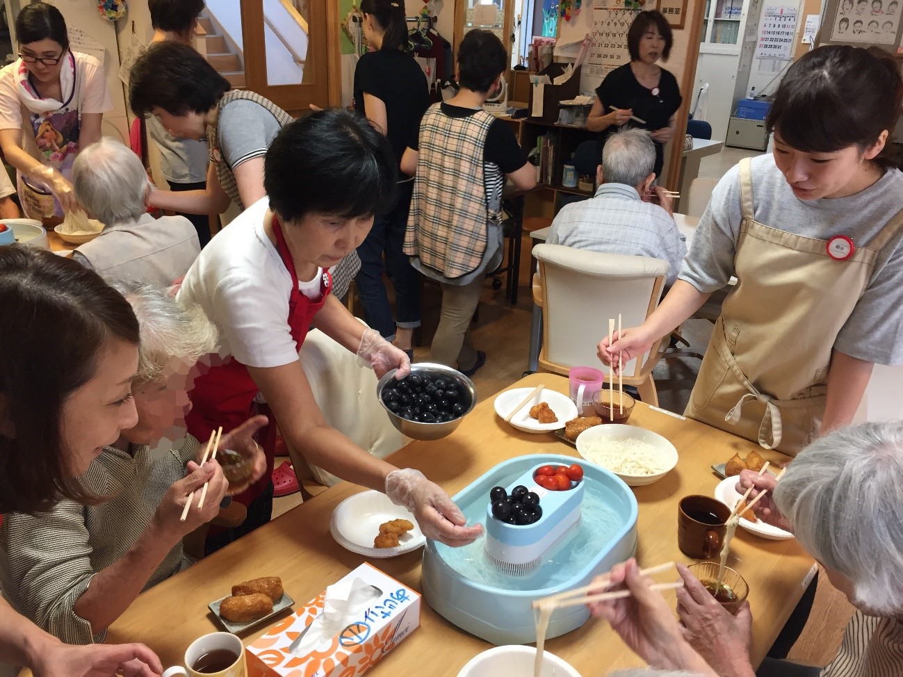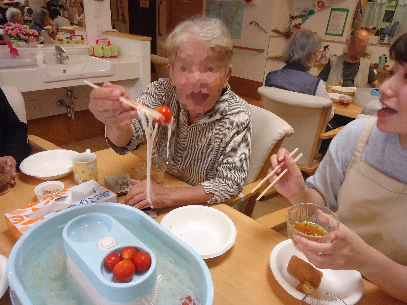 ご利用者様と流しそうめんを堪能でき、とても楽しい昼食になりました
