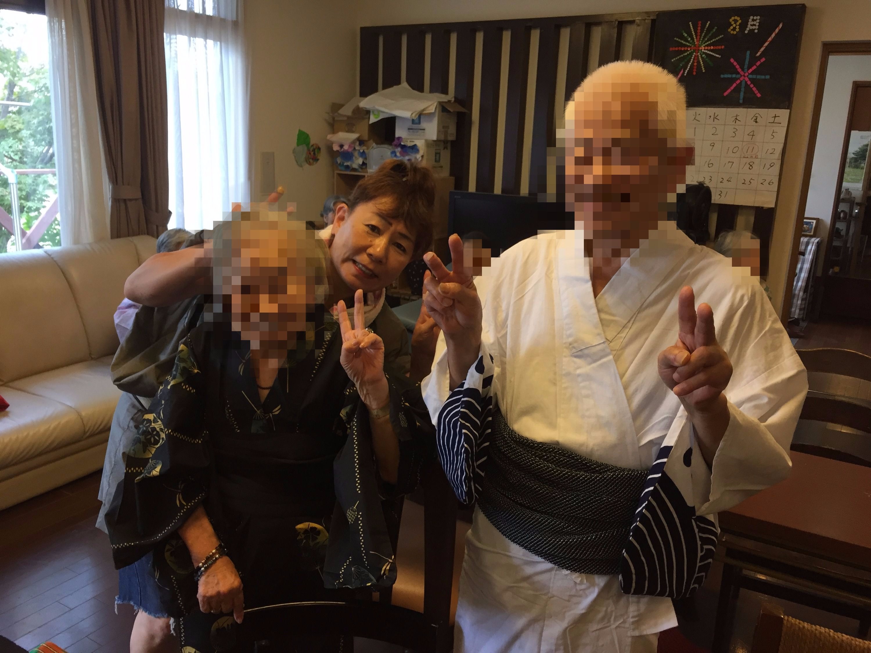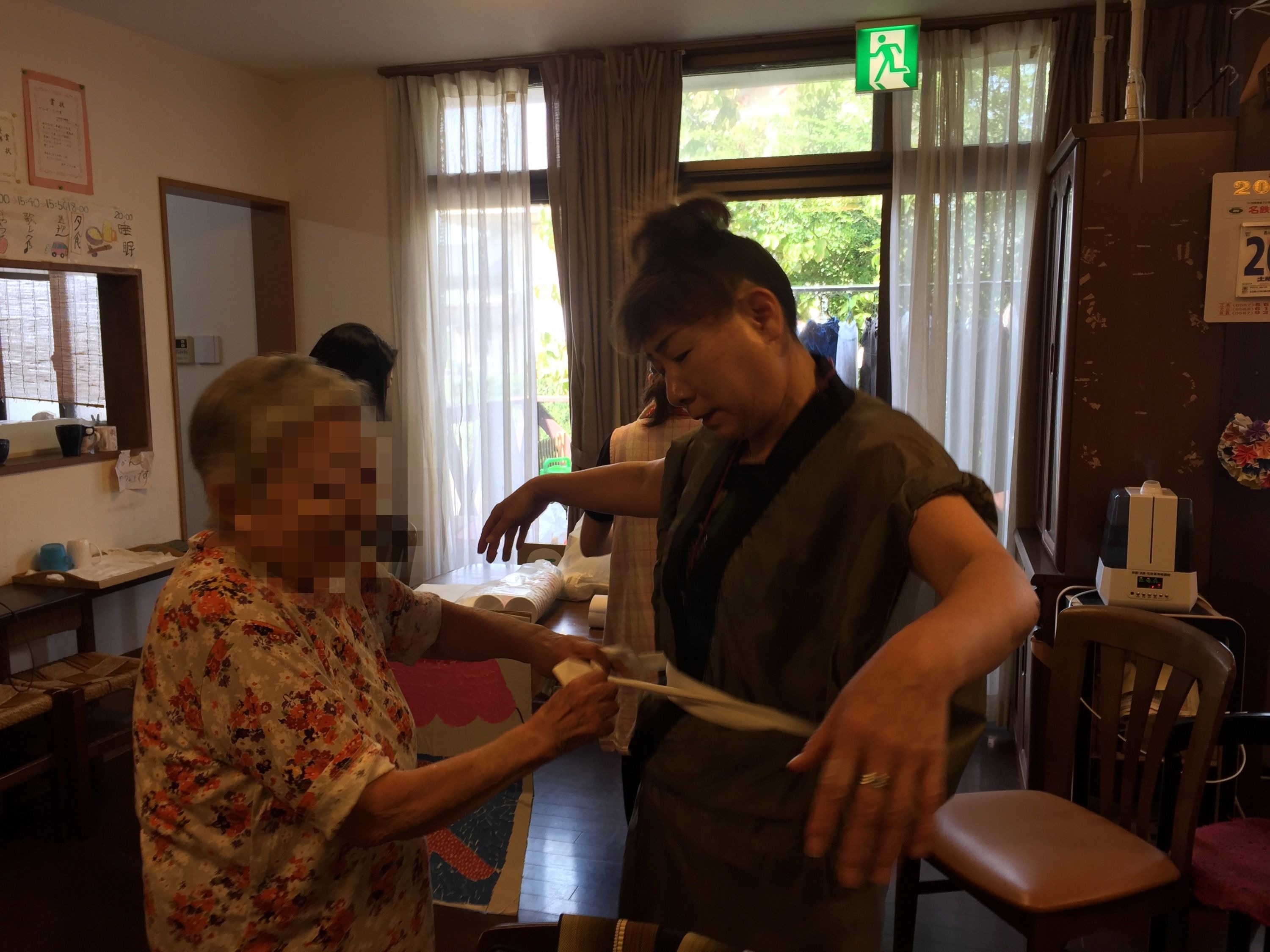 ご利用者様に帯を締めていただいていました(笑)