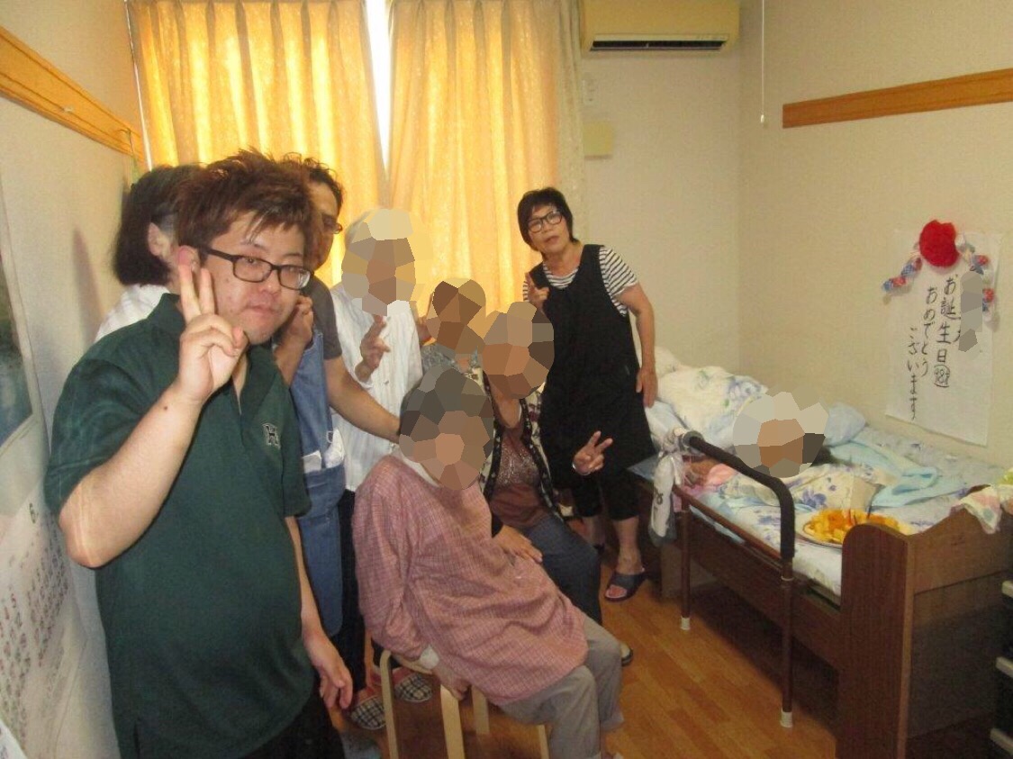 お誕生日を迎えられたご利用者様のお部屋にお邪魔して記念撮影をしました