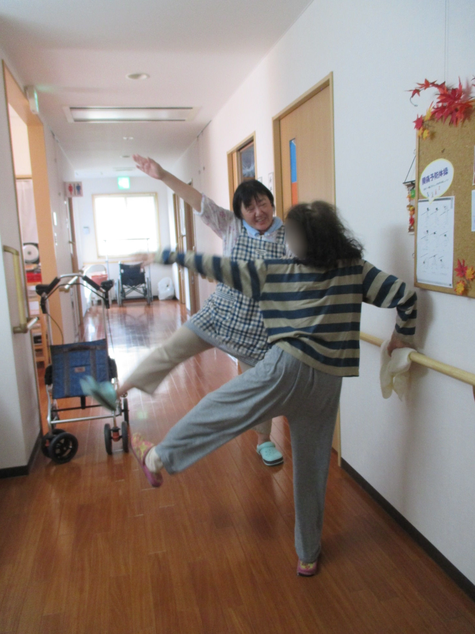 向かい合って、楽しそうに運動しています♬