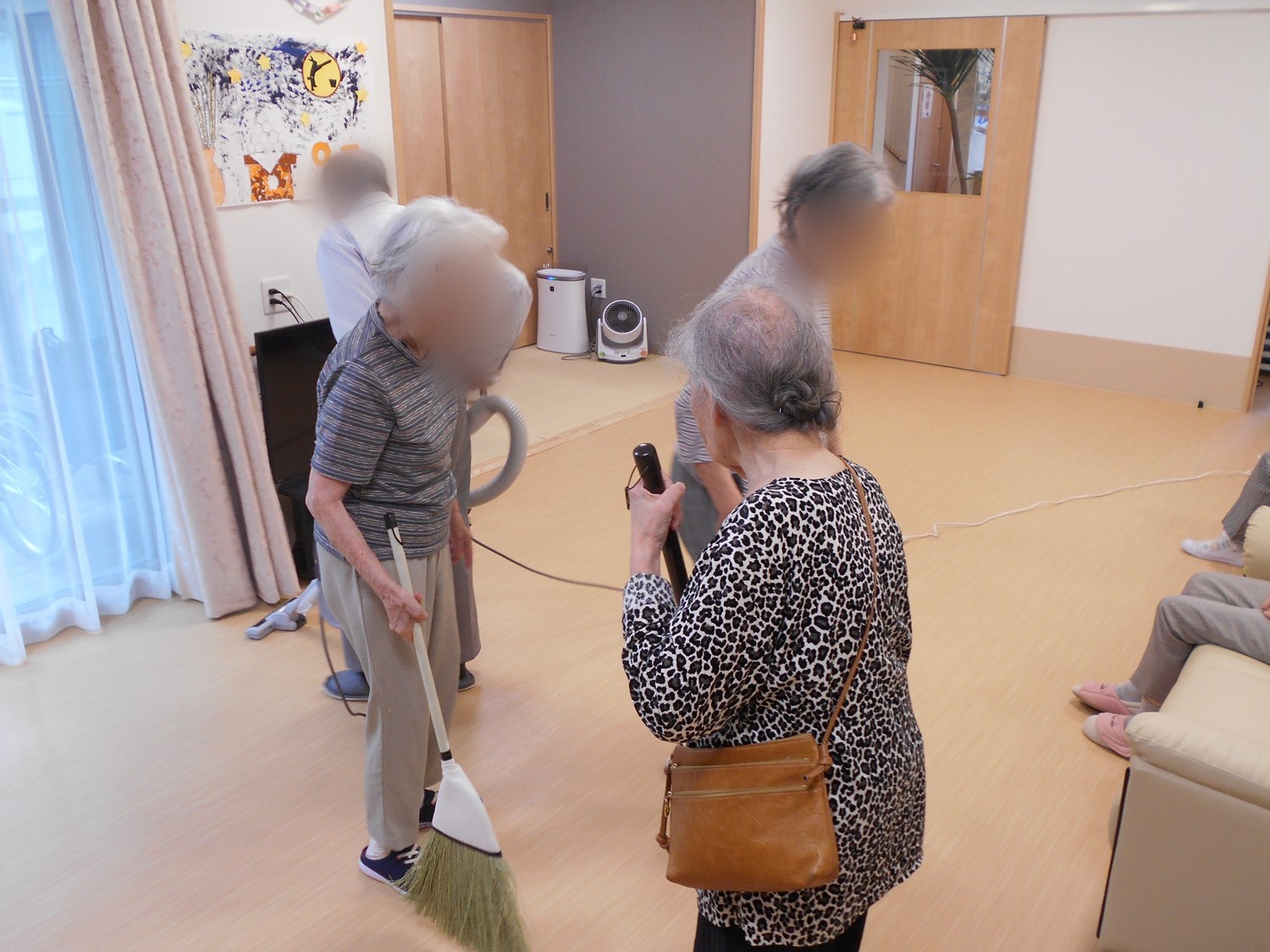 リビングの机やイスも全て移動させ、大掃除のよう(笑)