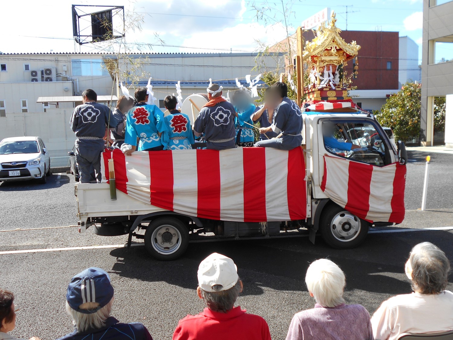 施設まで神輿が来てくださり、近くで見ると迫力があり皆さん大興奮でした