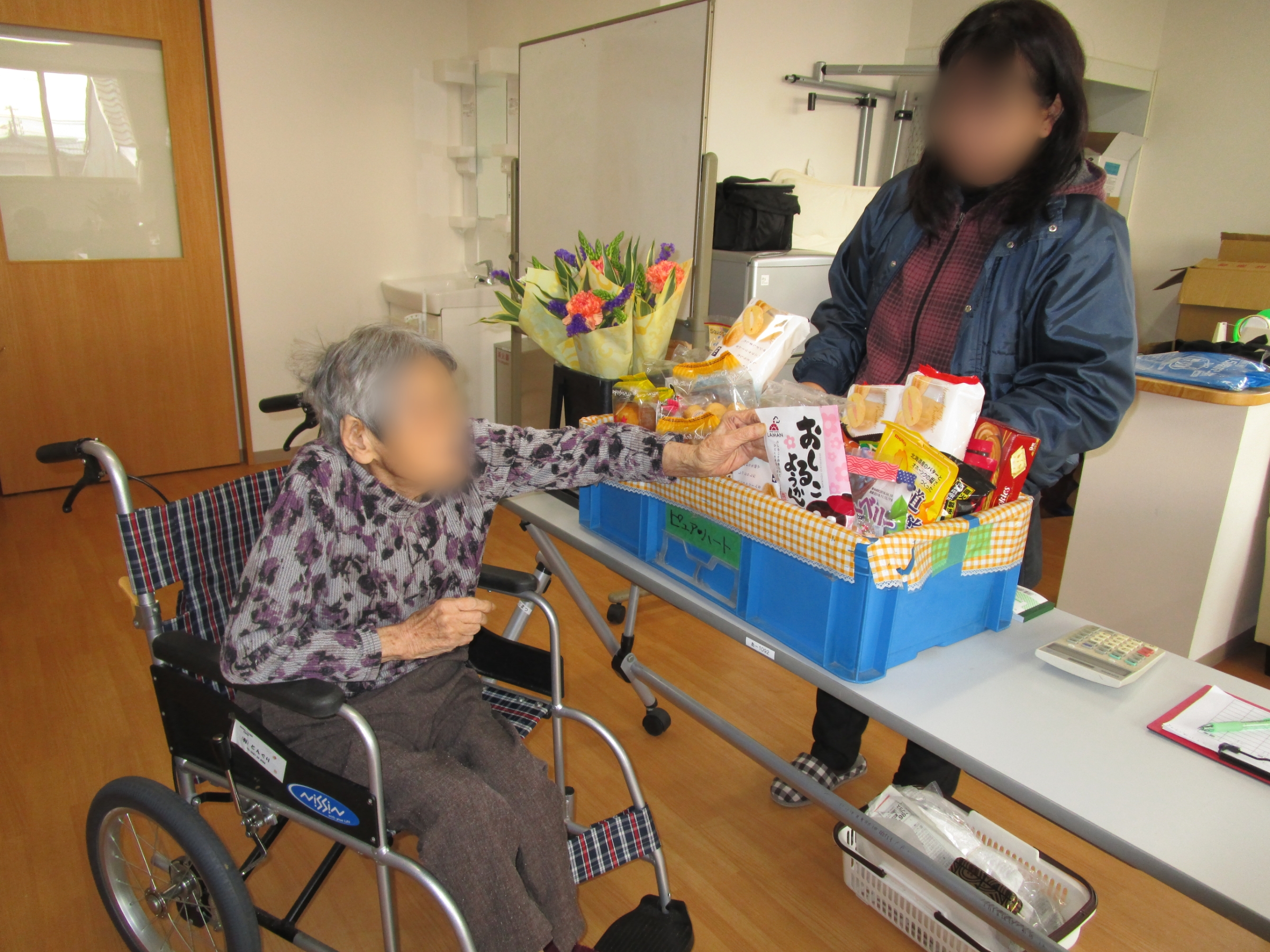 お菓子やお花を楽しそうに眺め、選んで見えました