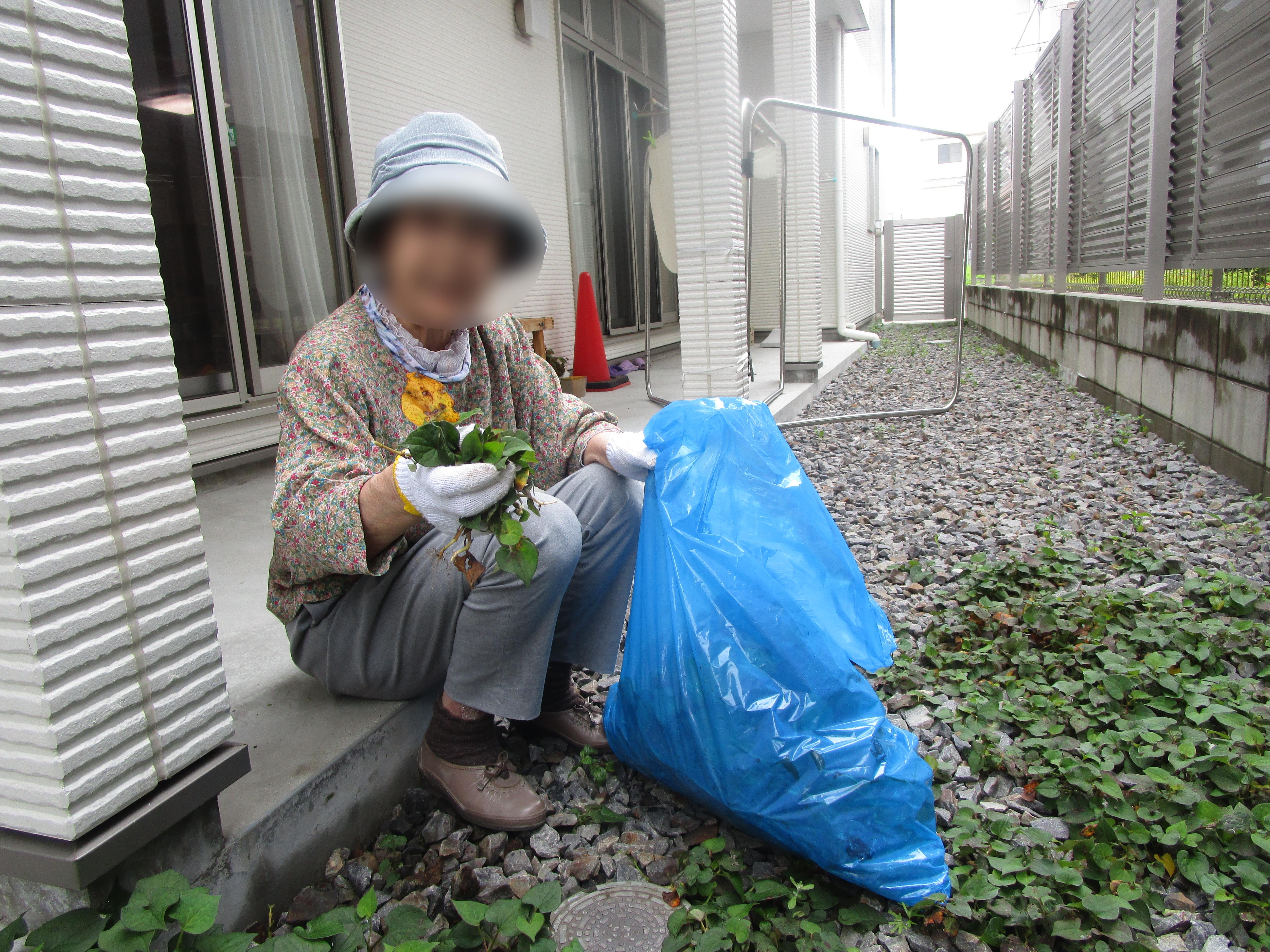 草取りをしながら「そろそろ茄子が出来るかなー?」「ミニトマトもよさそうだよ~」