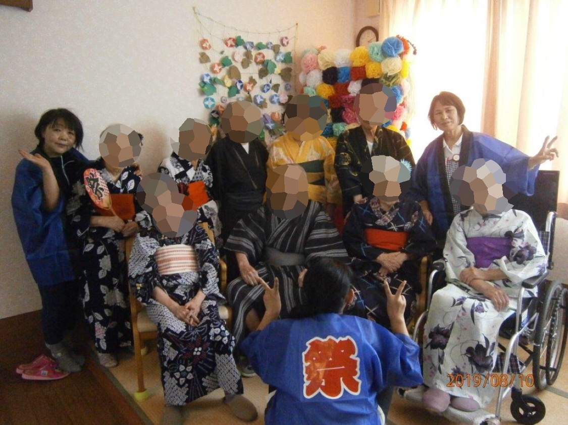 午後からは全ご利用者様に浴衣を着て頂き、浴衣撮影会・盆踊りを行いました