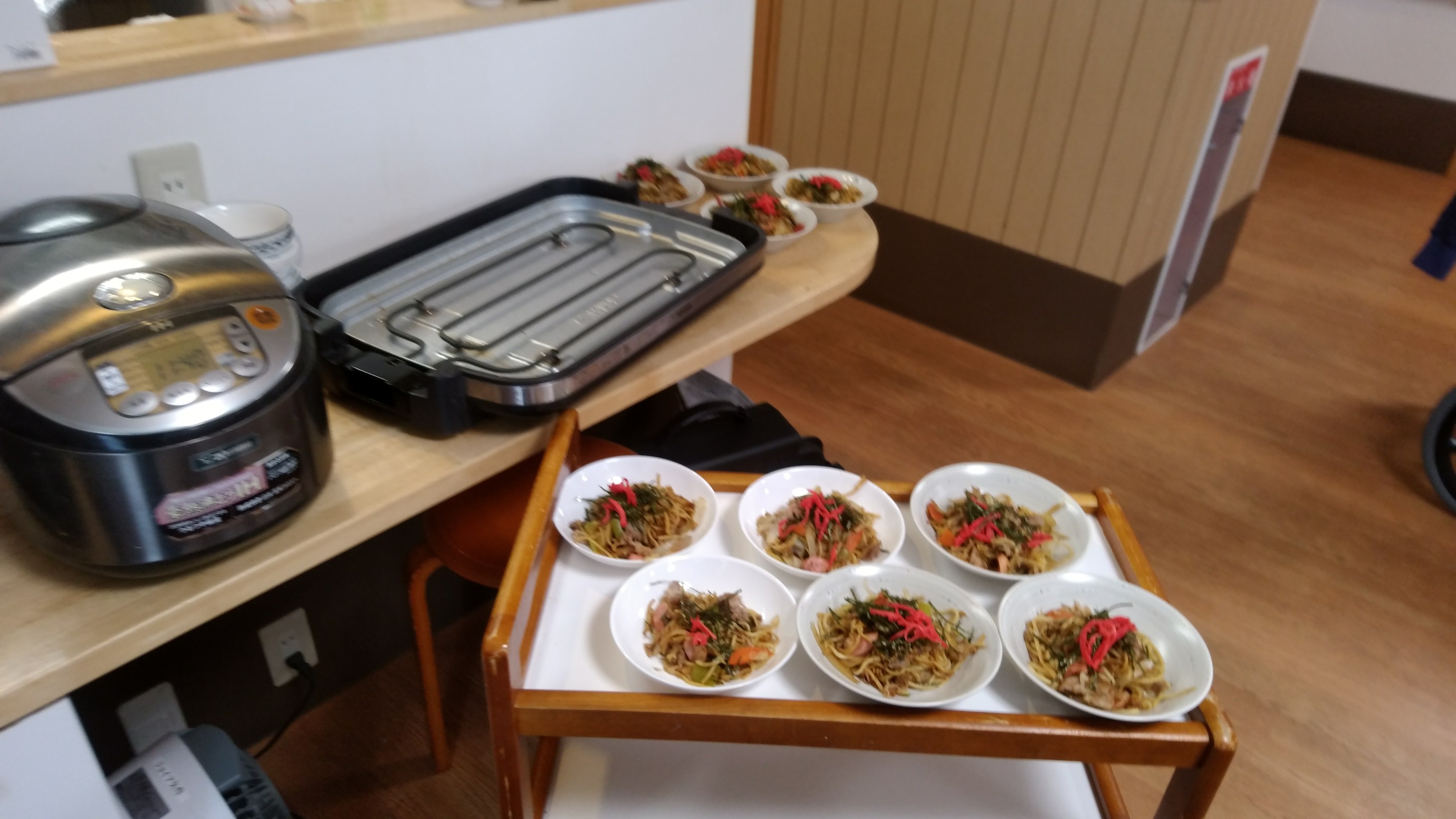 みんなでホットプレートで焼きそば作り!