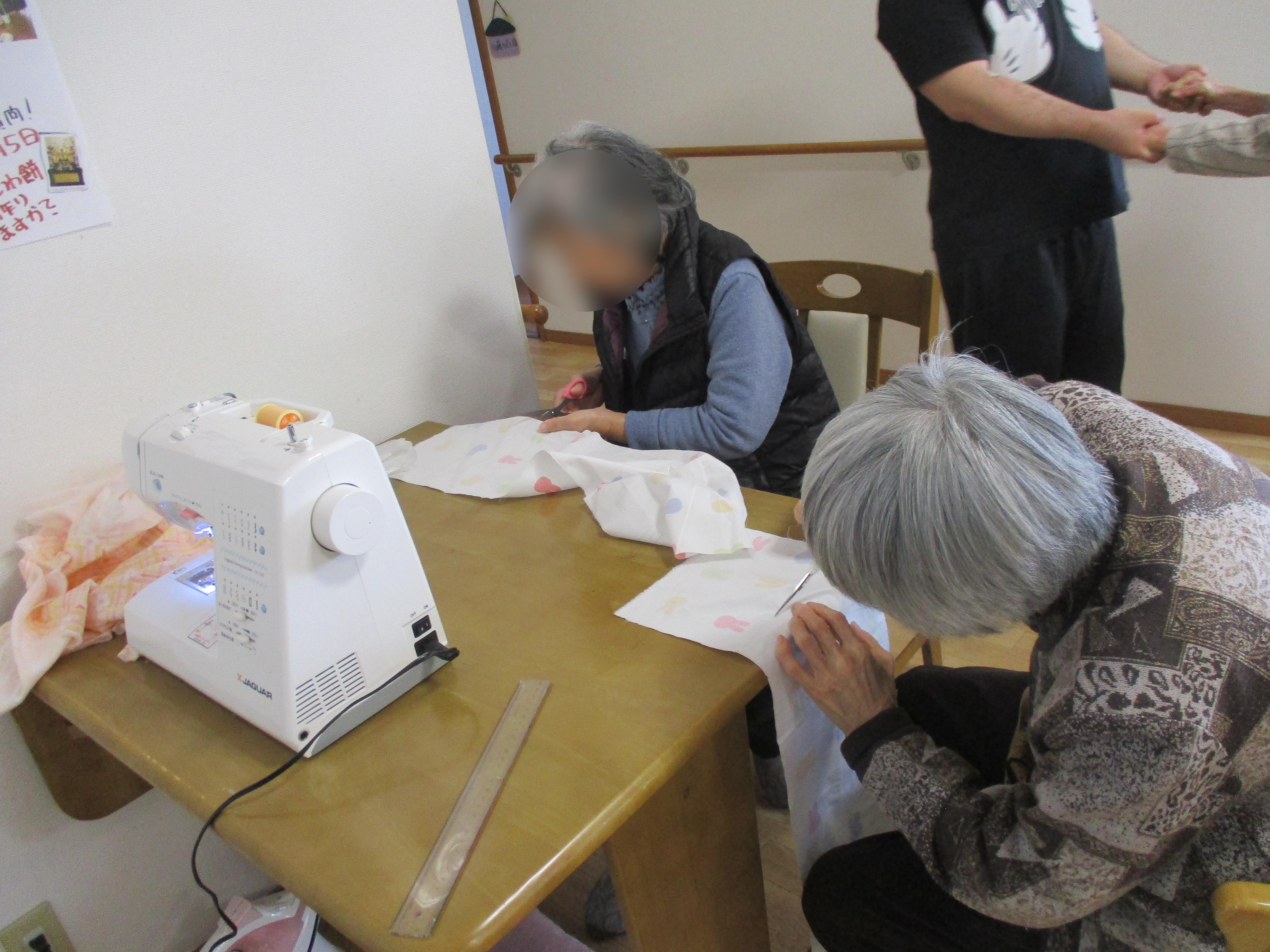 縫う人、アイロンをかける人、裁断をする人に分かれて作業を行いました。