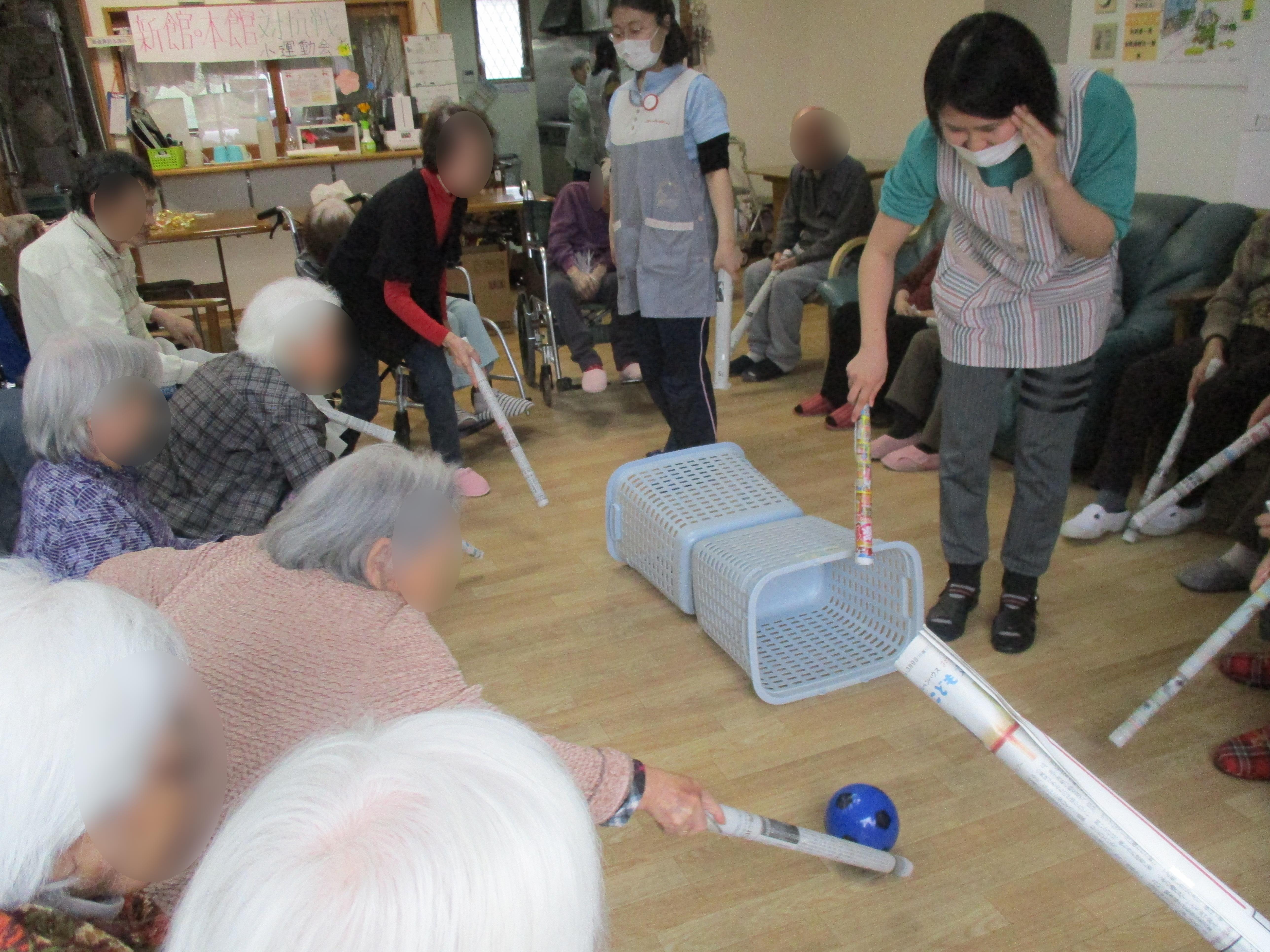 玉入れ、玉転がし、菓子食い競争の種目で新館対本館で戦いました