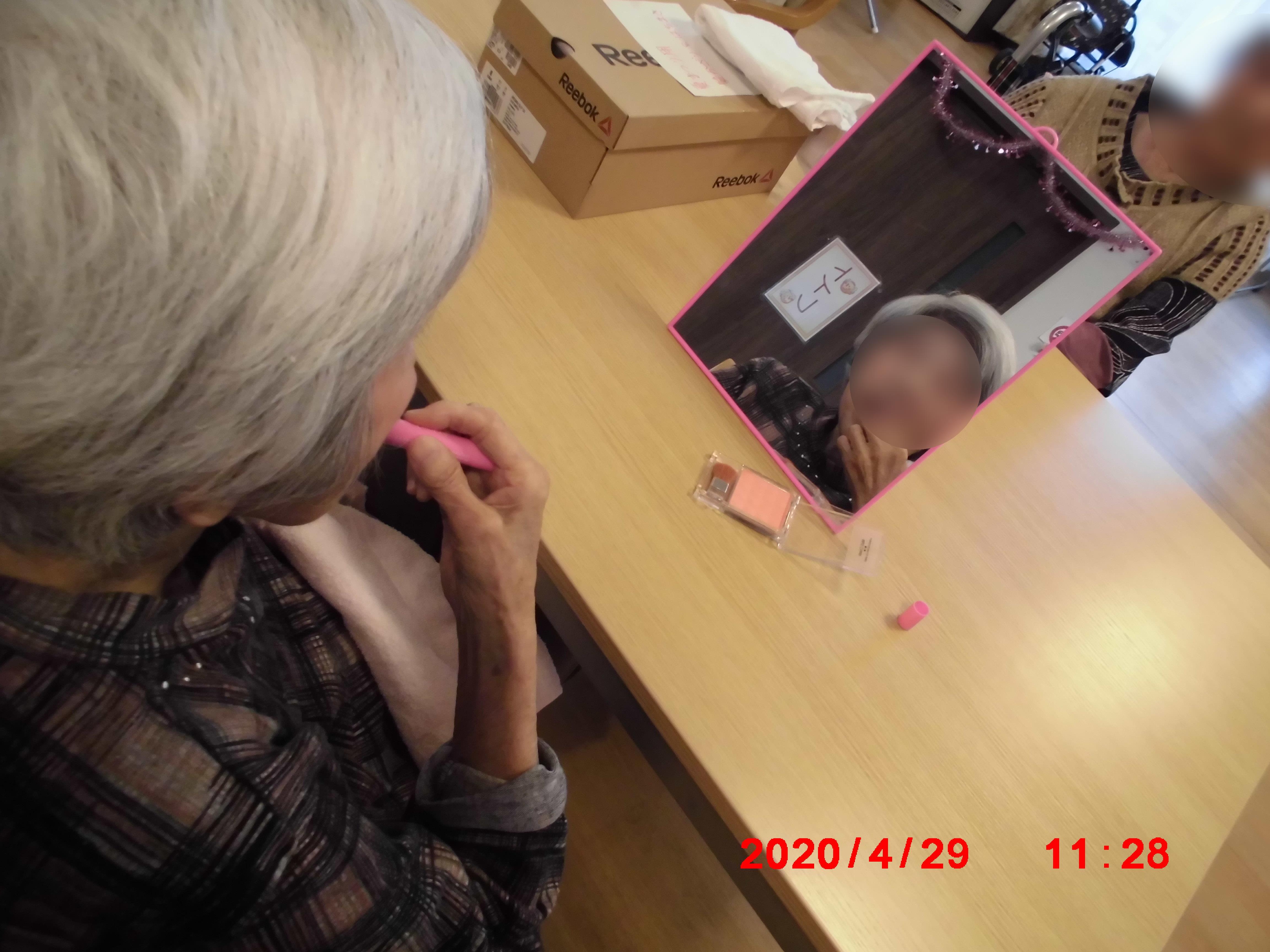 普段はなかなかお話をされることがないご利用者様、メイクをすごく上手にされていました