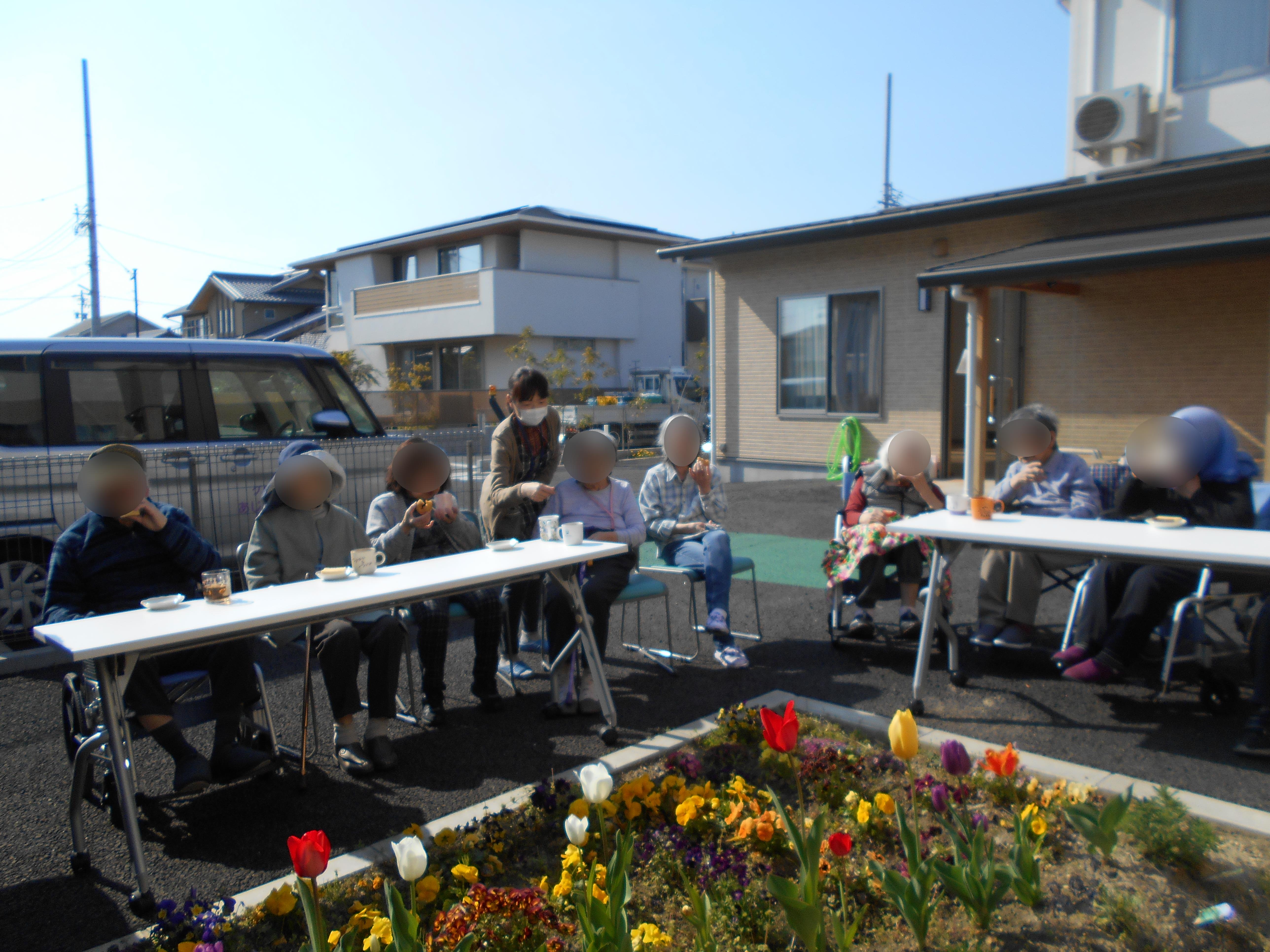 お花がきれいだったのでテーブルを出して外でお茶をしました☕✨