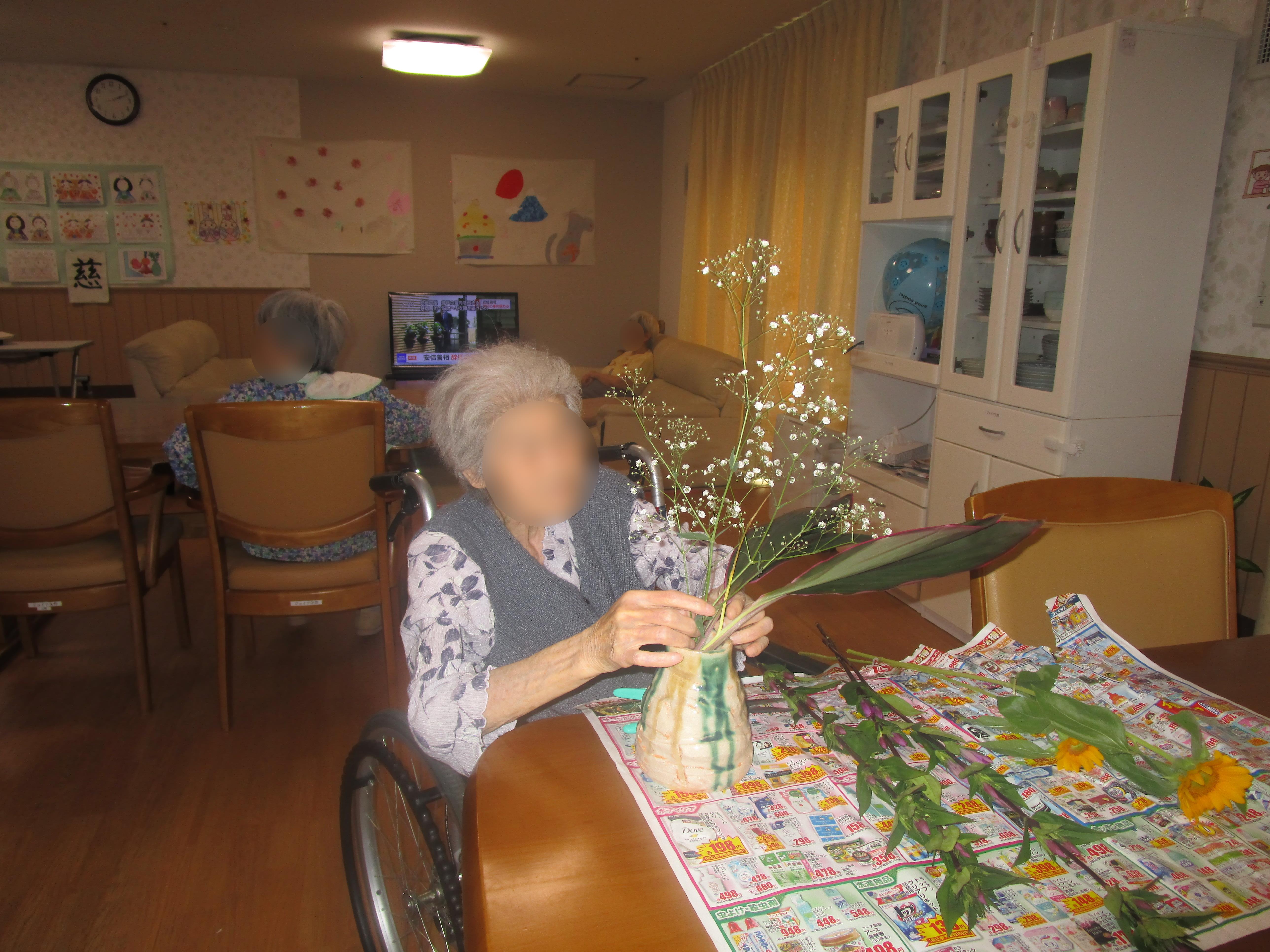 普段であれば外出も兼ねて一緒にお買い物に行くのですが、コロナの影響で外出できなかったので、せっかくだからと生花をお贈りし生け花をして頂きましたpresent