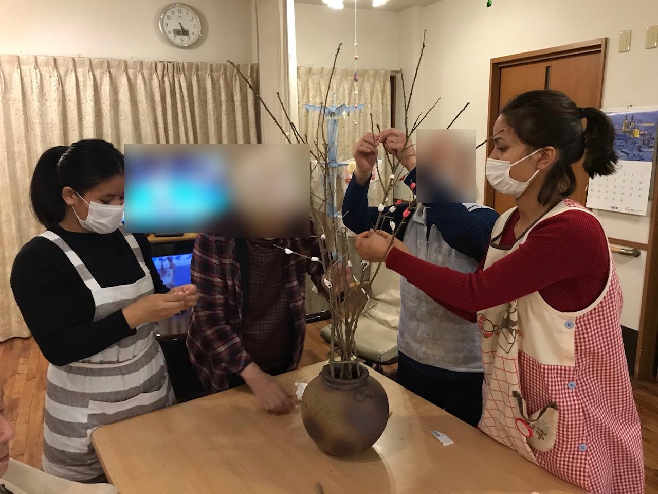 小規模多機能のご利用者様とグループホームのご利用者様が、年末に花餅を作って