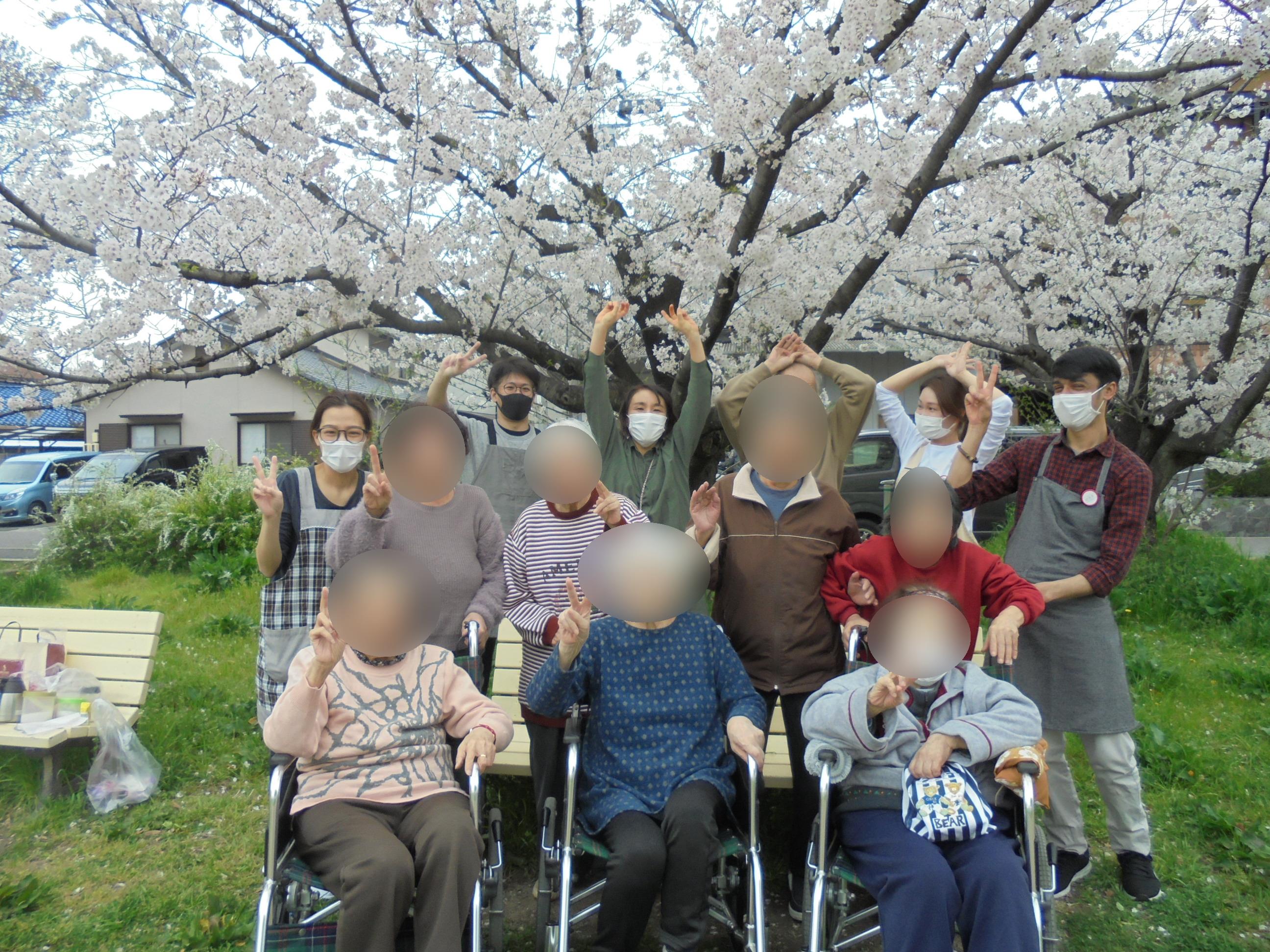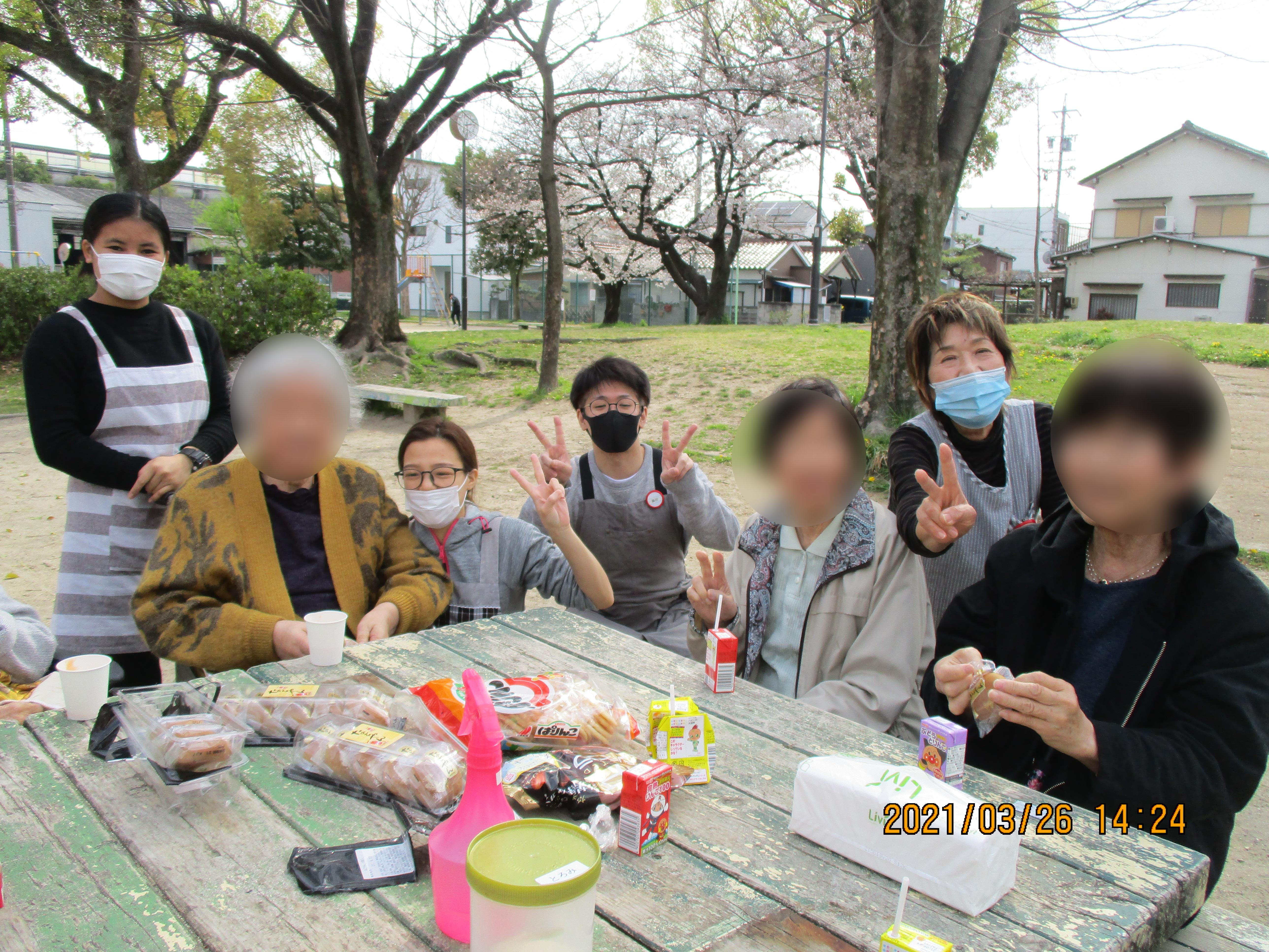 今年は例年に比べ桜の開花が早く、3月下旬に、各フロアーごとにおやつをもってお花見に出かけました