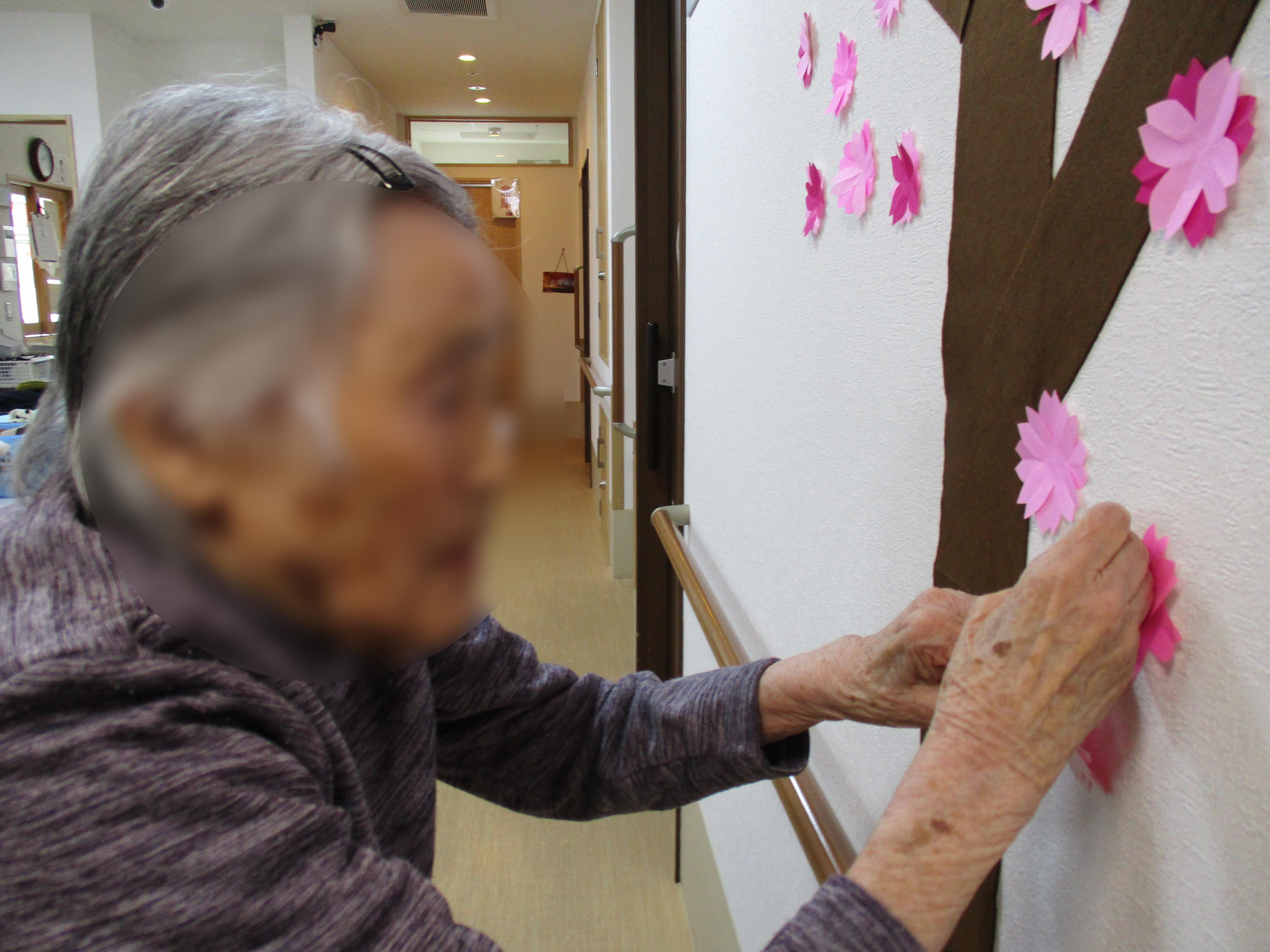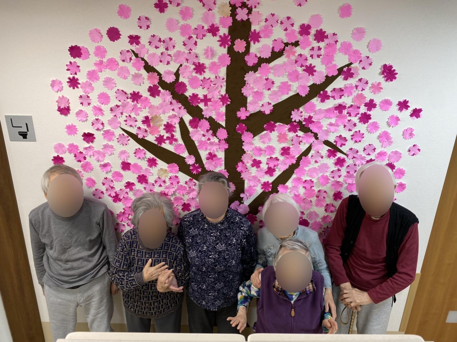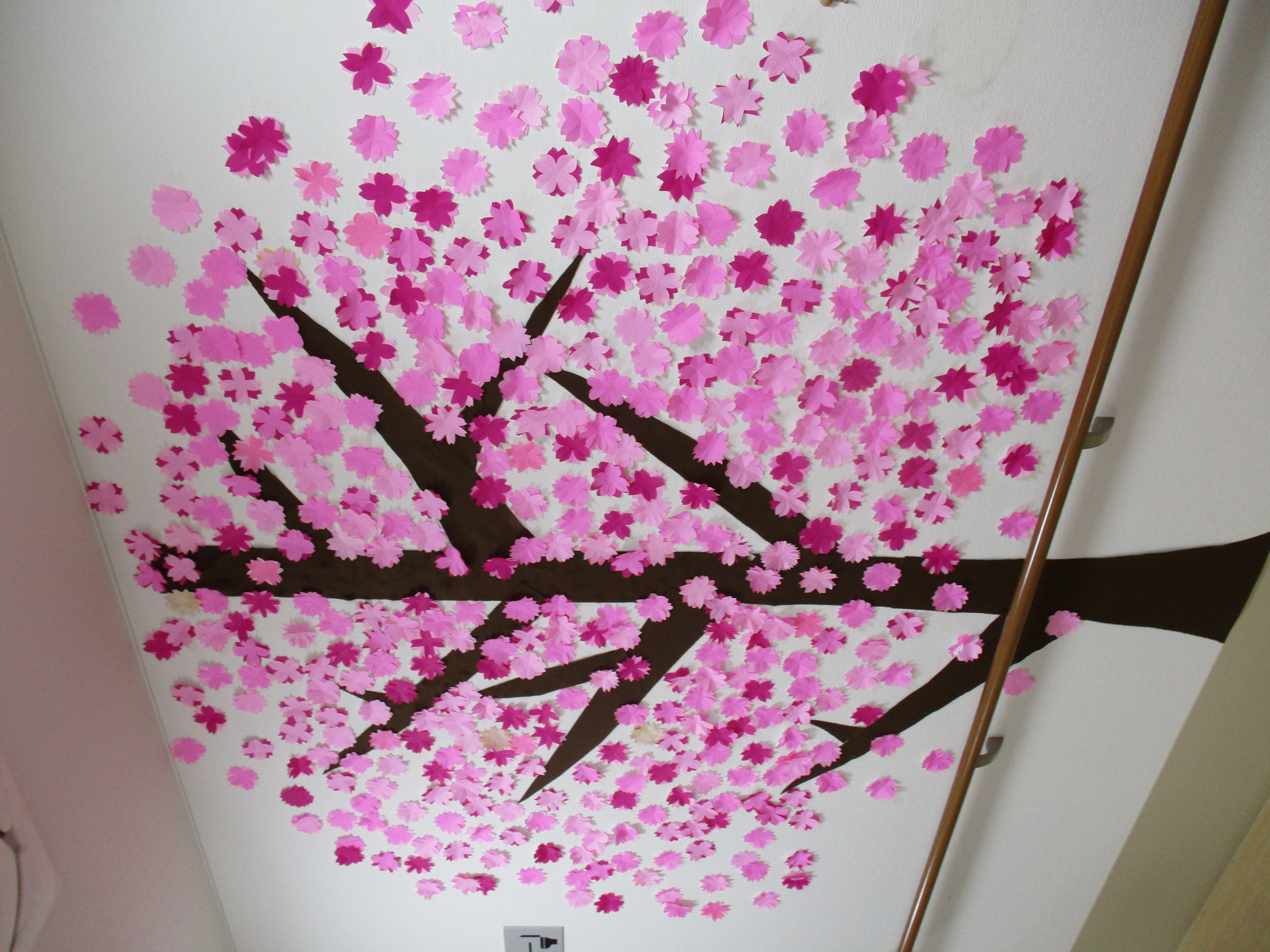 彩り坂下の廊下に、天井まで届くほどの大きな桜の花が咲きました