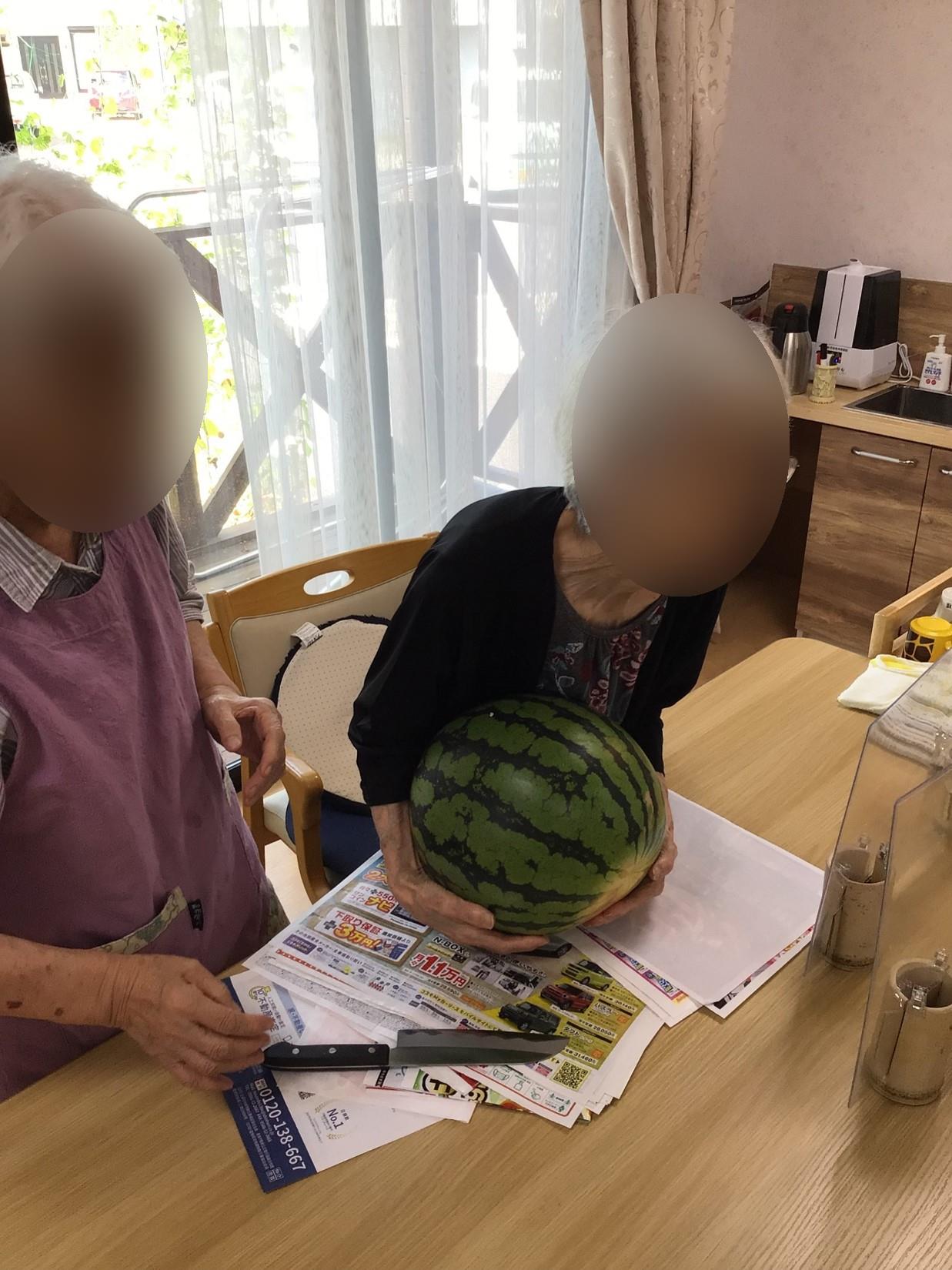 本当に大きいスイカだったので、「大きいね」、「重いね」と仰っていました。