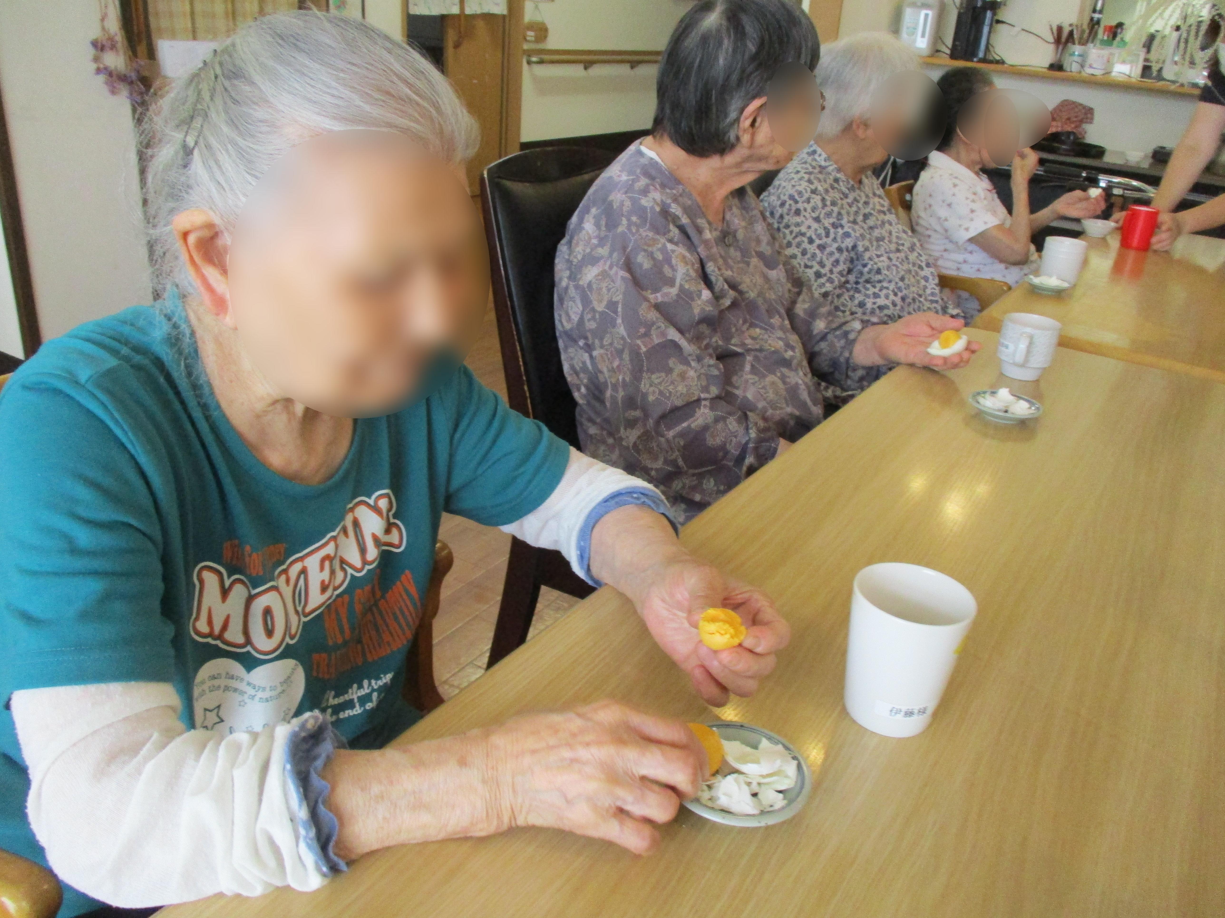 ゆで卵にして、10時のコーヒーの時、モーニングで召し上がって頂きました