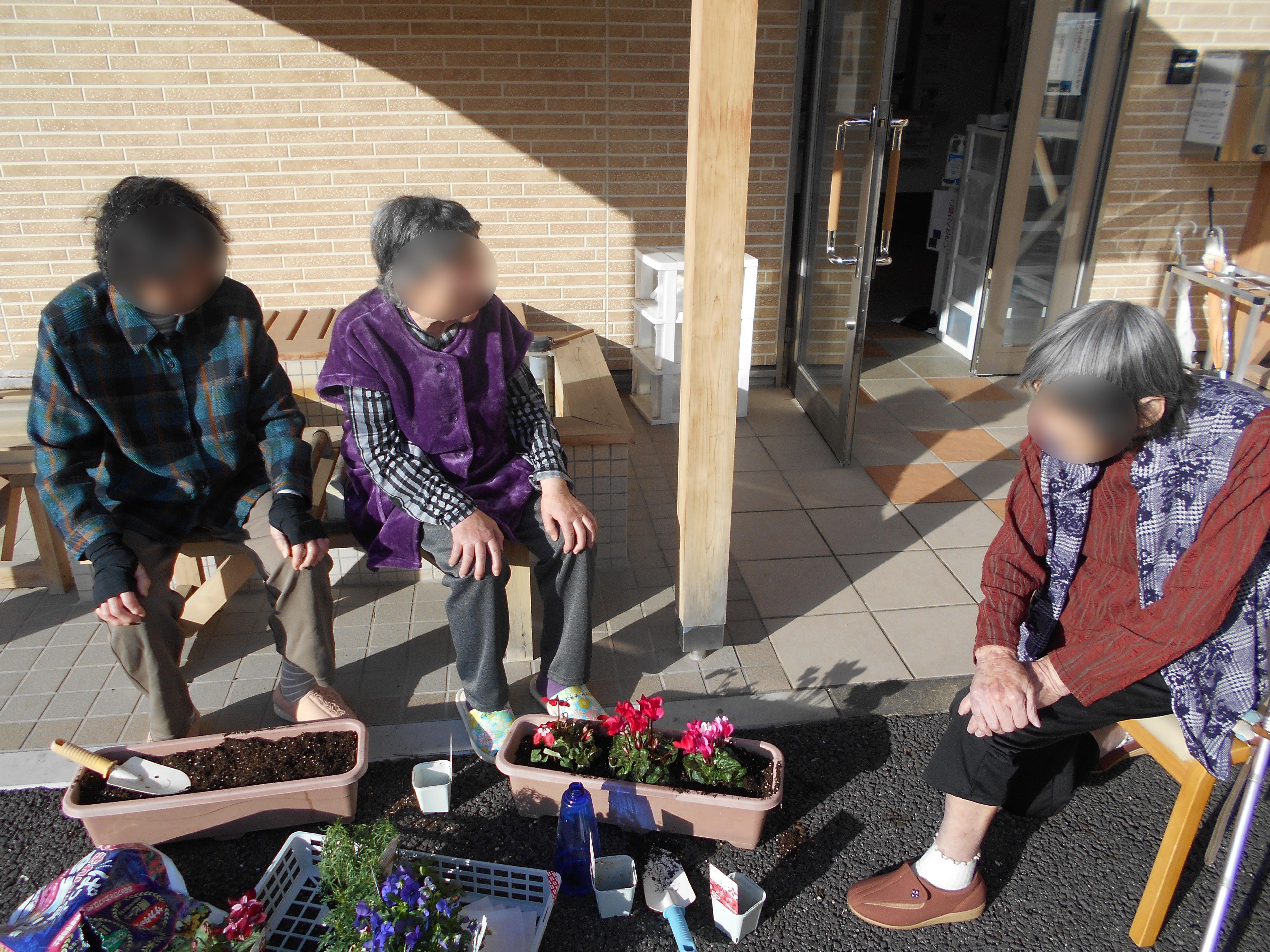 会話もはずみながら、プランターにお花を植えて頂き、