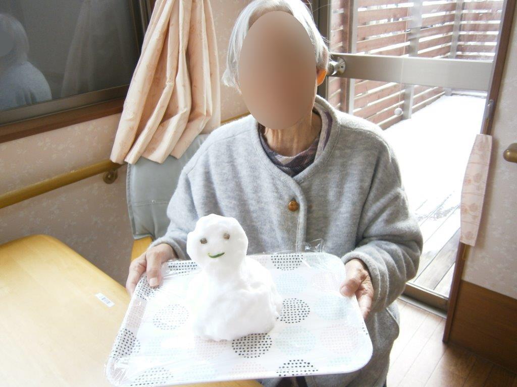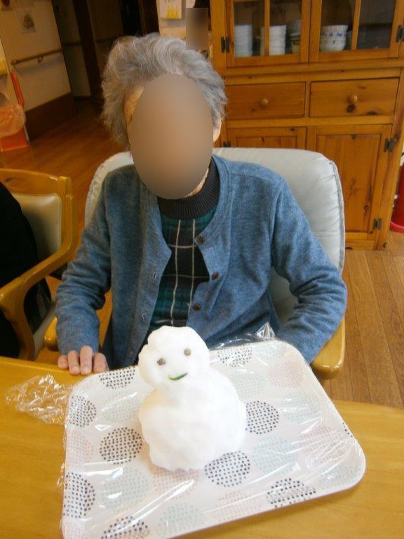 せっかく積もる程雪が降ったので、職員が作った雪だるまを利用者様に見て頂きまし