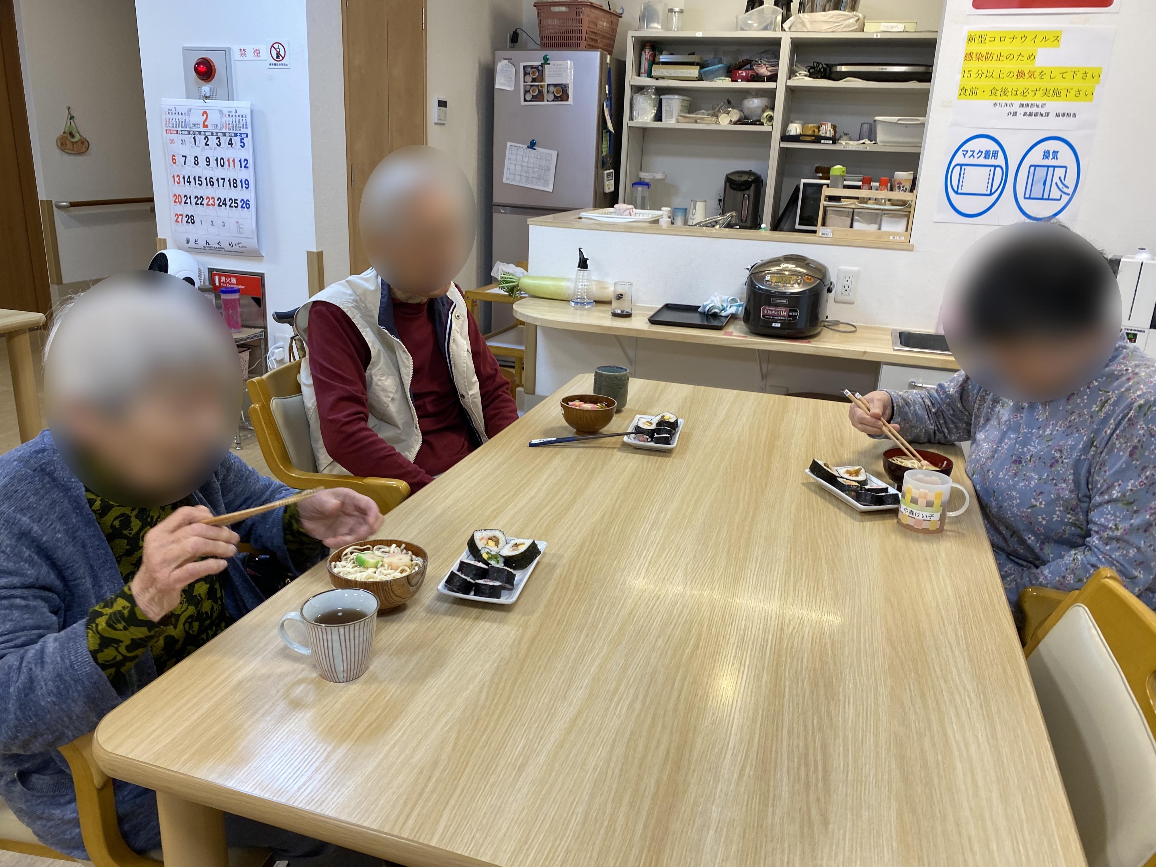 恵方巻きをそれぞれがぶり