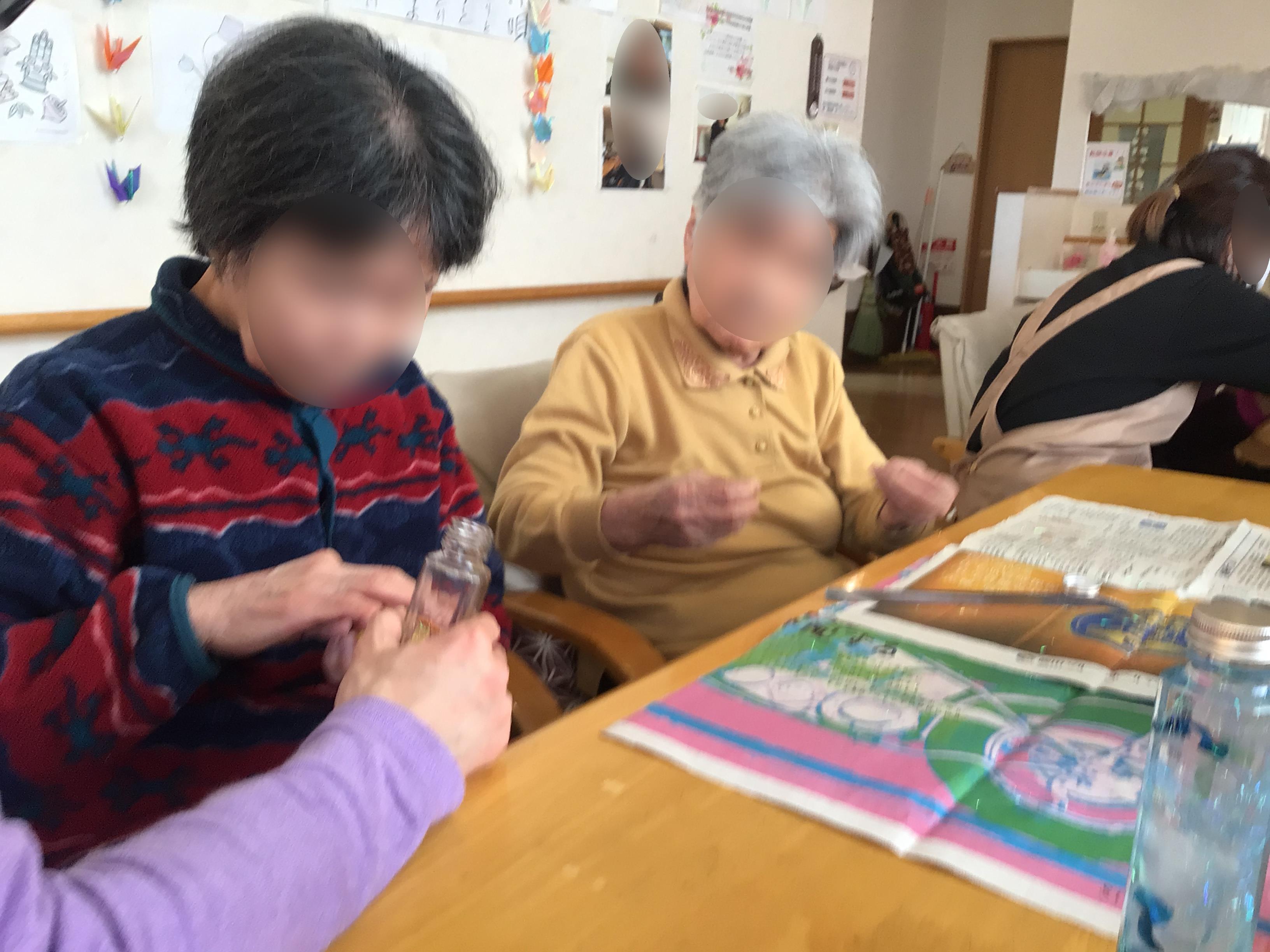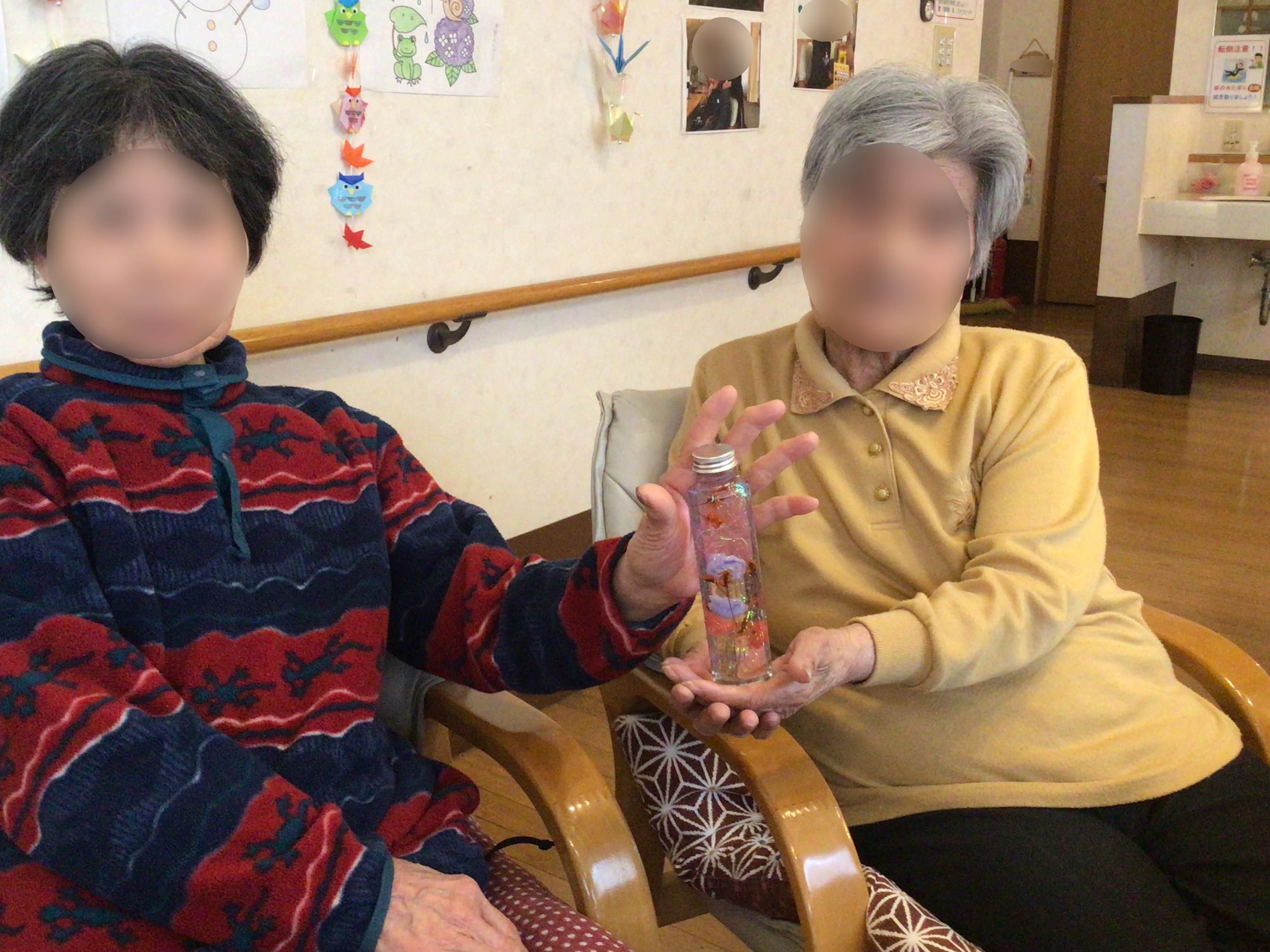 レクリエーションの時間にハーバリウム作りをしました