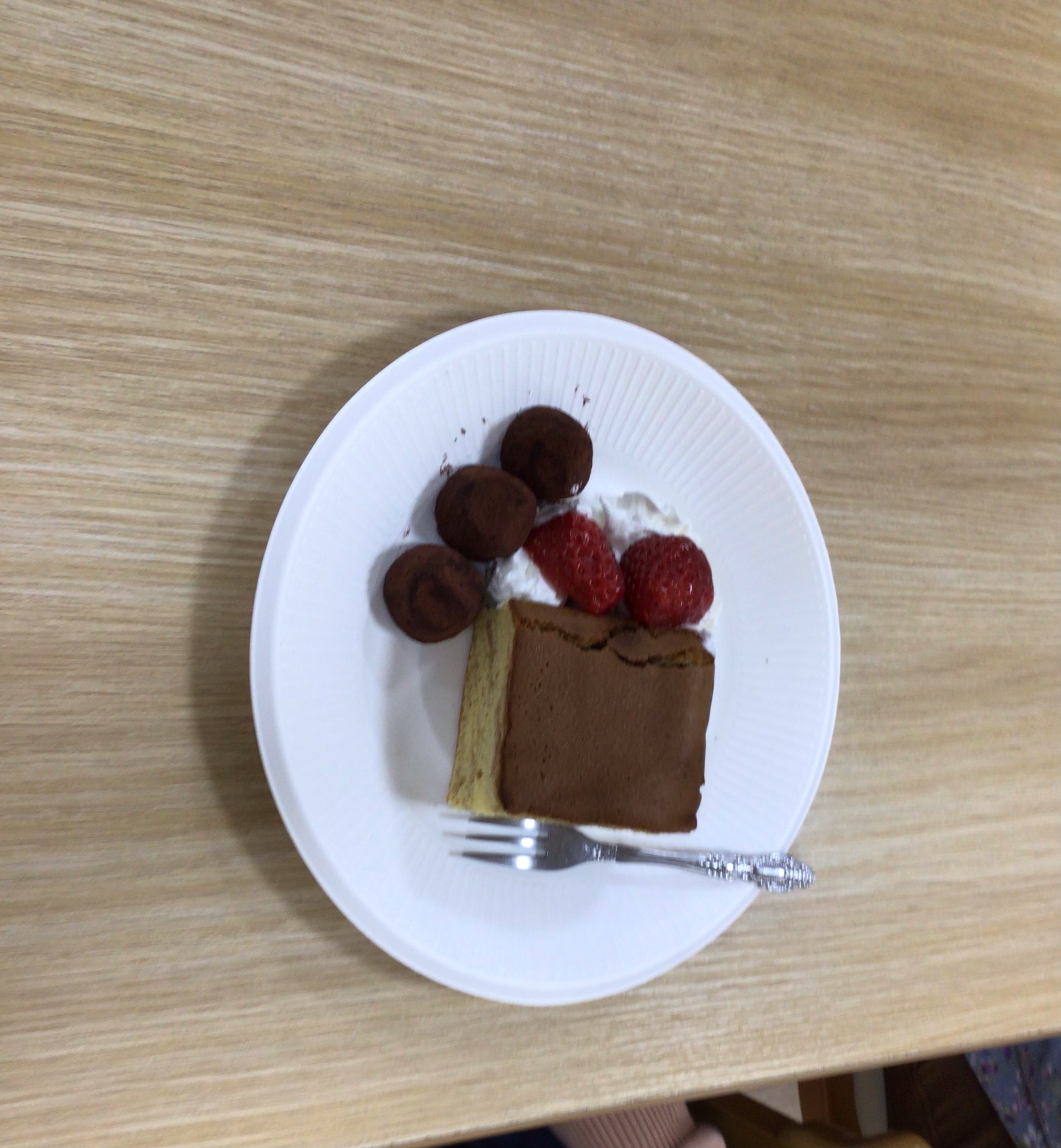 1階はチョコブラウニーにイチゴのトッピング