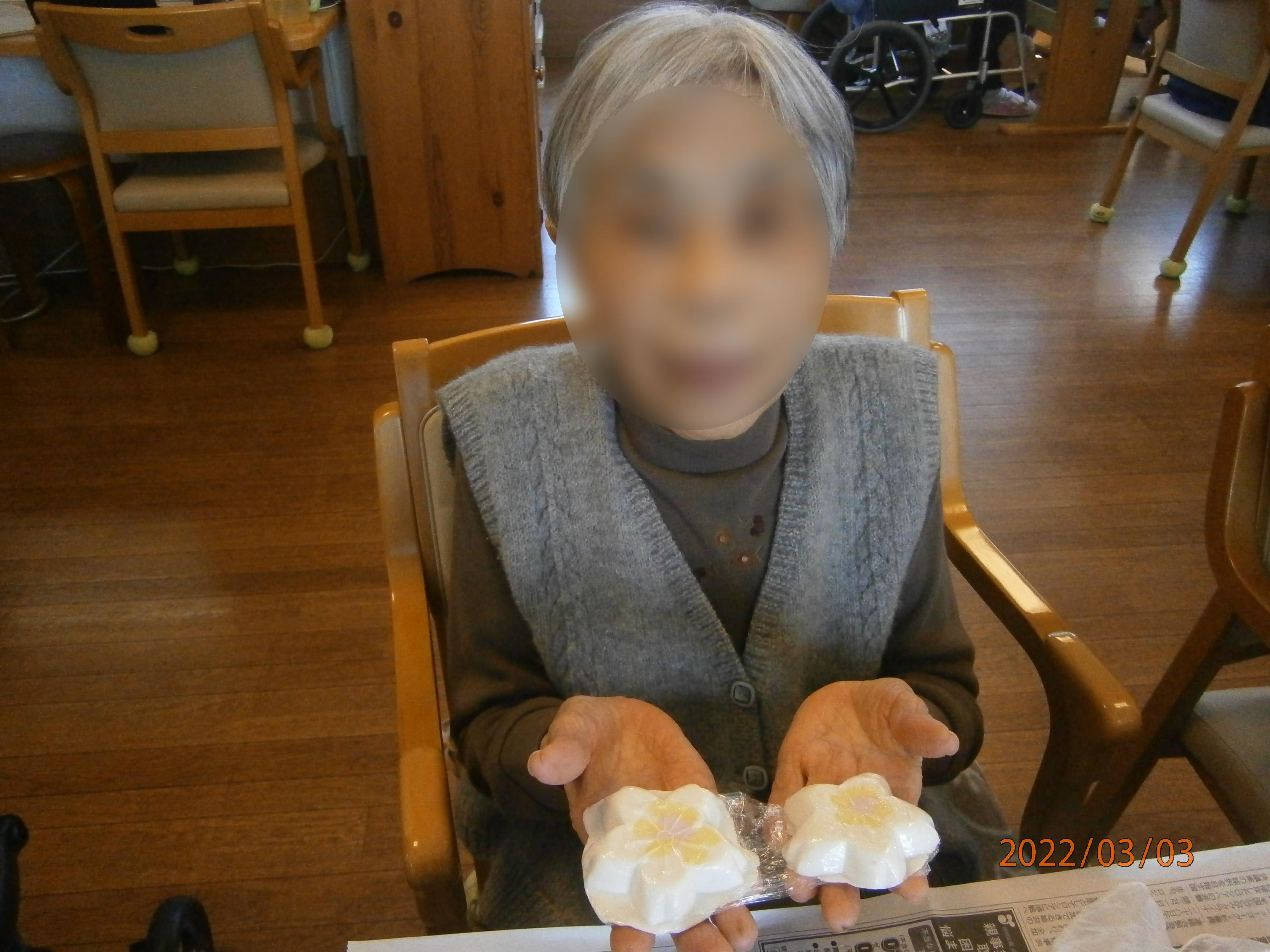 型は桜、人形、鯛など様々な形を用意しそれぞれご利用者様に色のついた生地をはめて頂きました