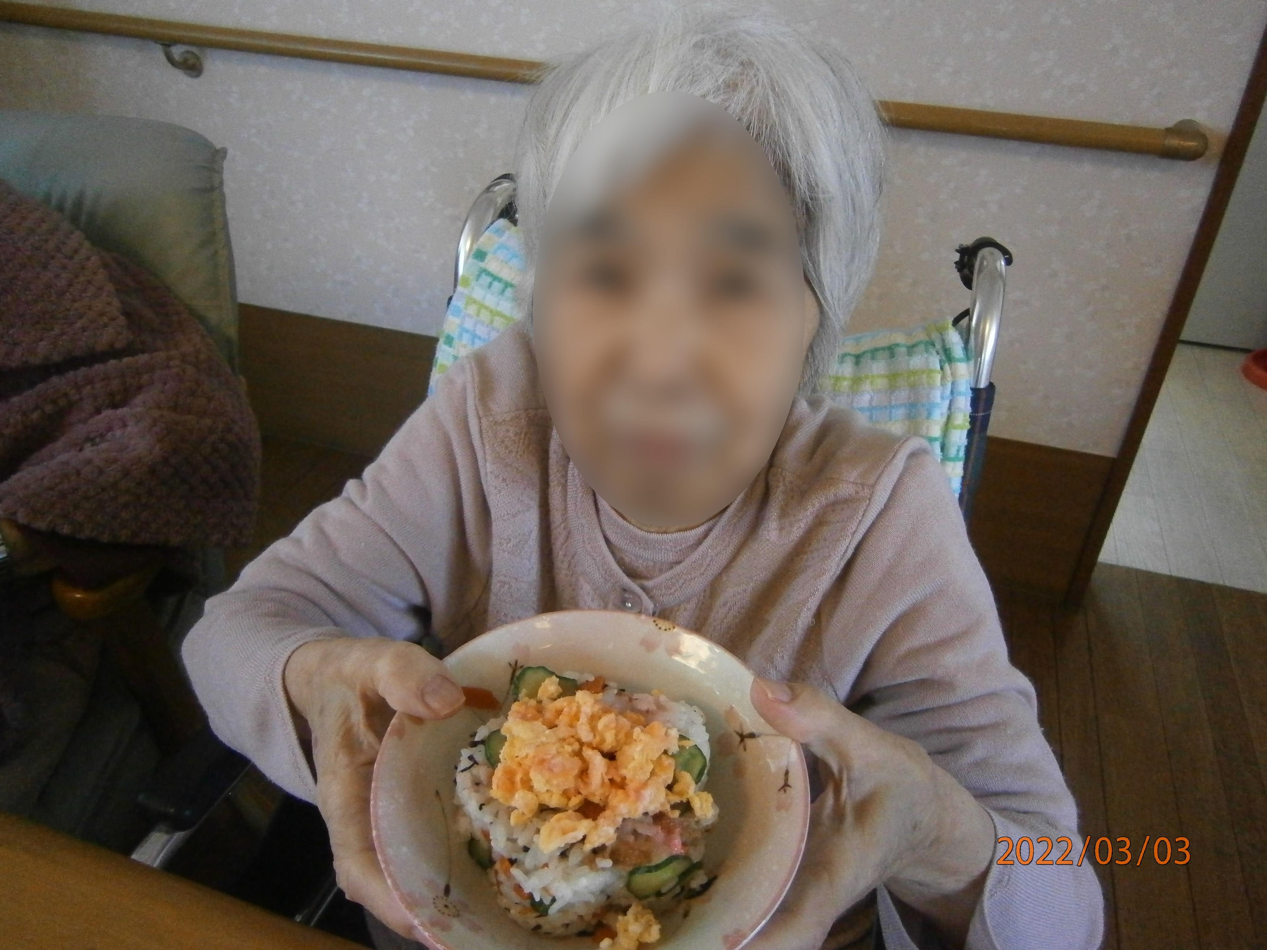 昼食は梅の形の手作りちらし寿司を皆さんで召し上がりました