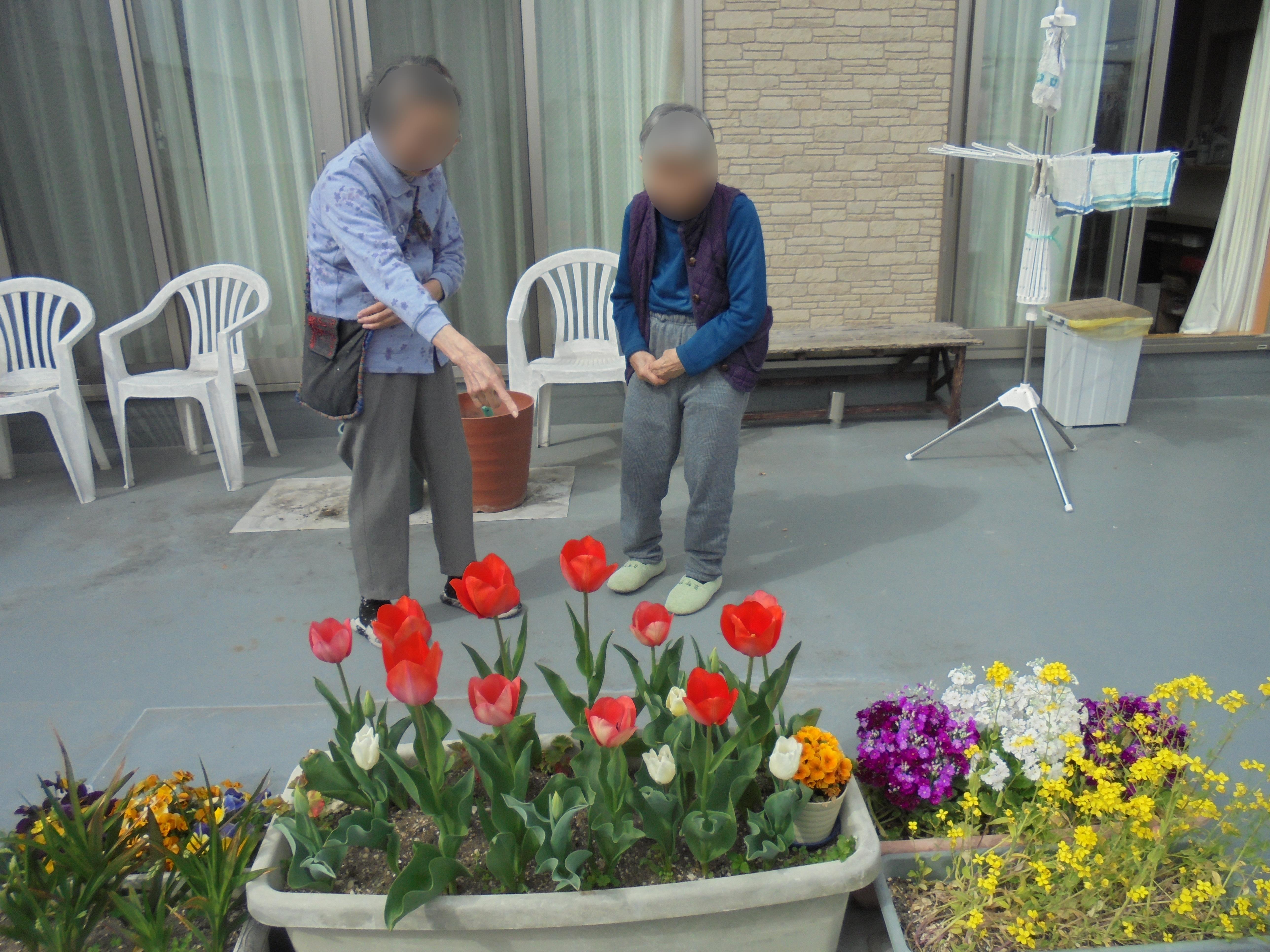 「秋に球根を植えたね」「きれいな色ね」等…お話しされています。