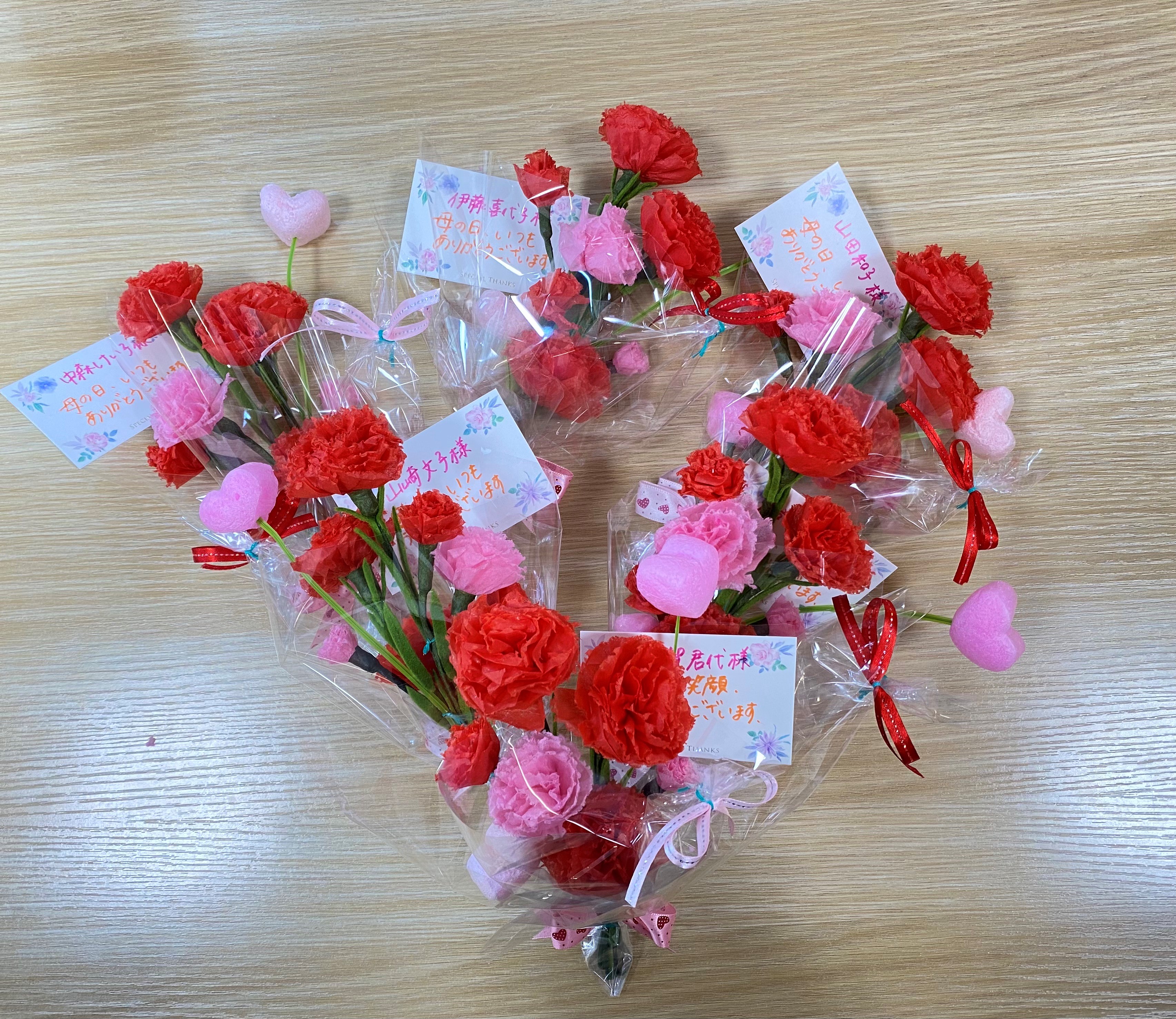 職員手作りのカーネーションをプレゼントしました