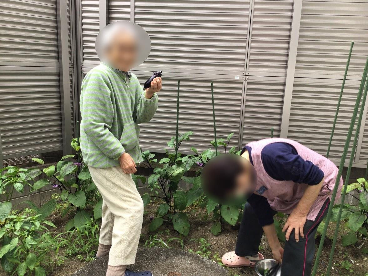 4月に植えた野菜がなったので、ご利用者様と一緒に収穫しました