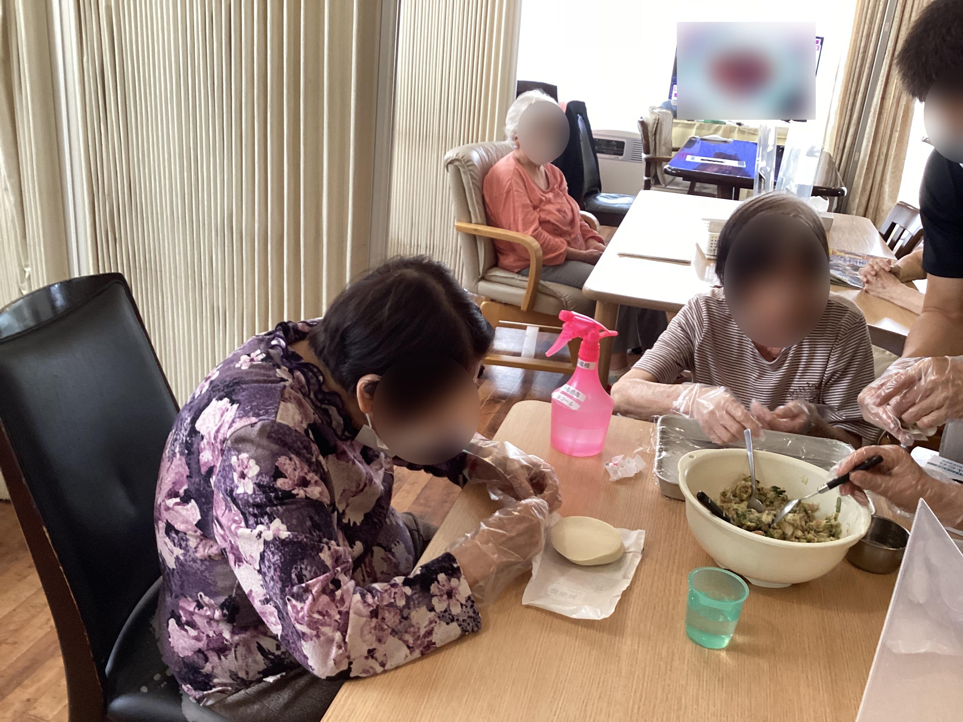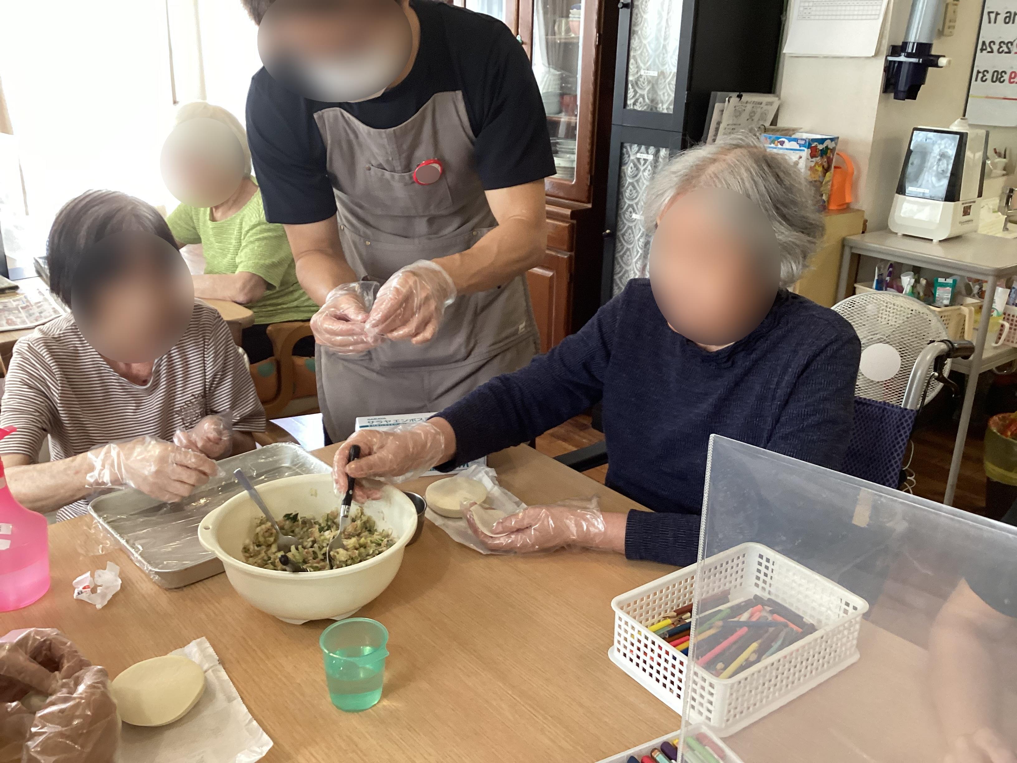 男性スタッフが、ご利用者様に作り方を聞きながら作っている場面もありました