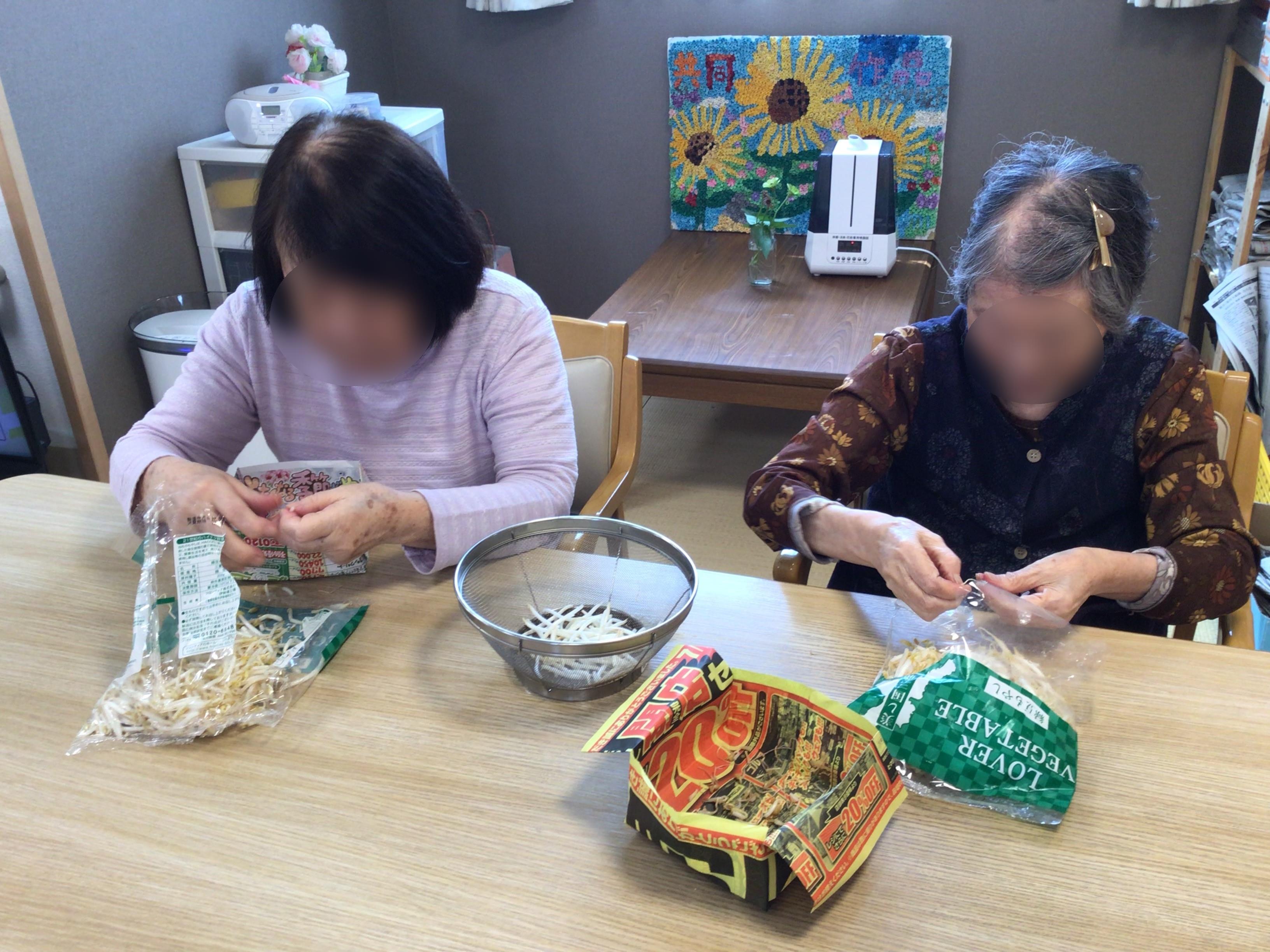 もやしのひげ取りと