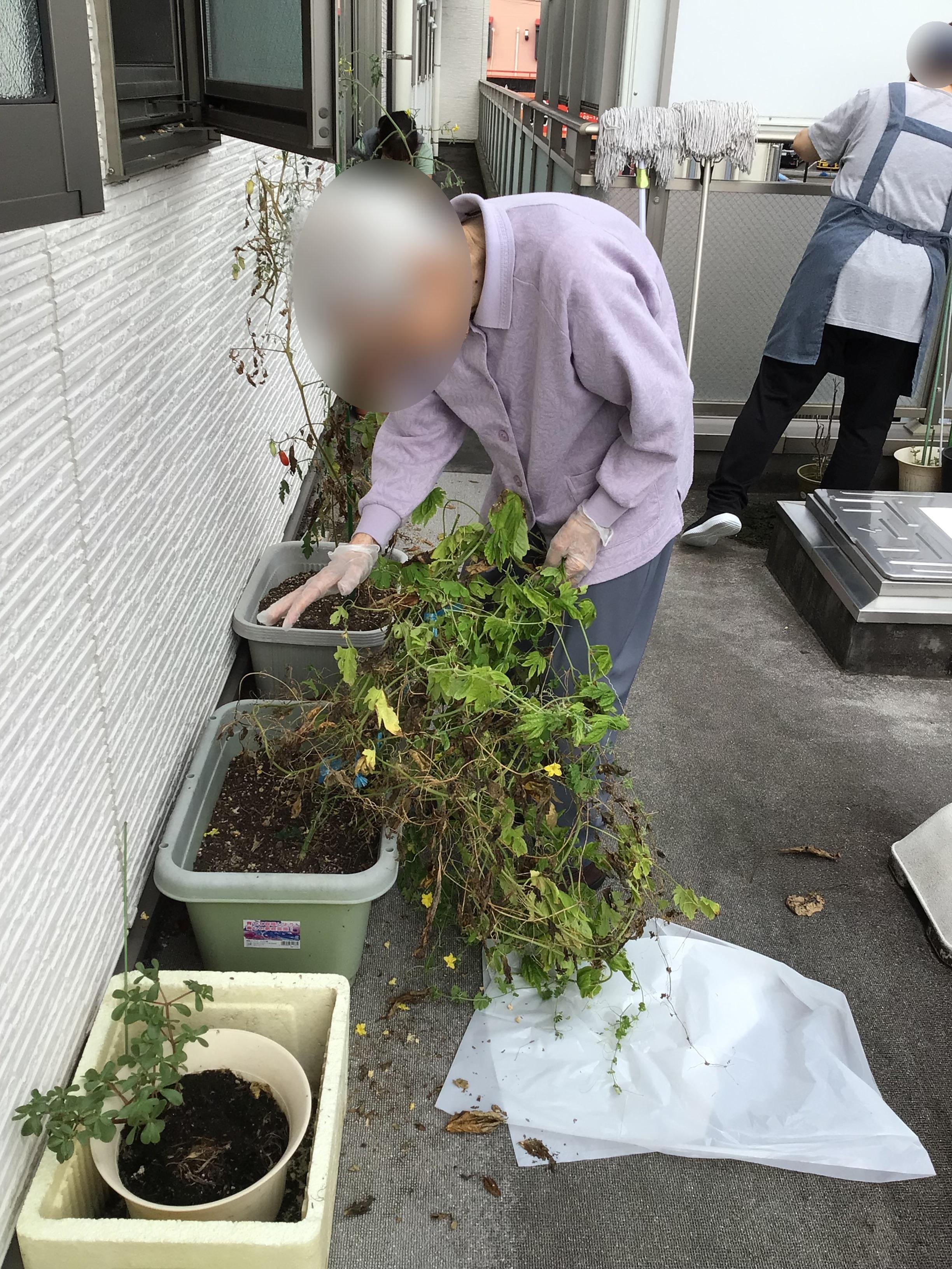 夏の終わりを迎え、2Fのプランターの植替えをしました
