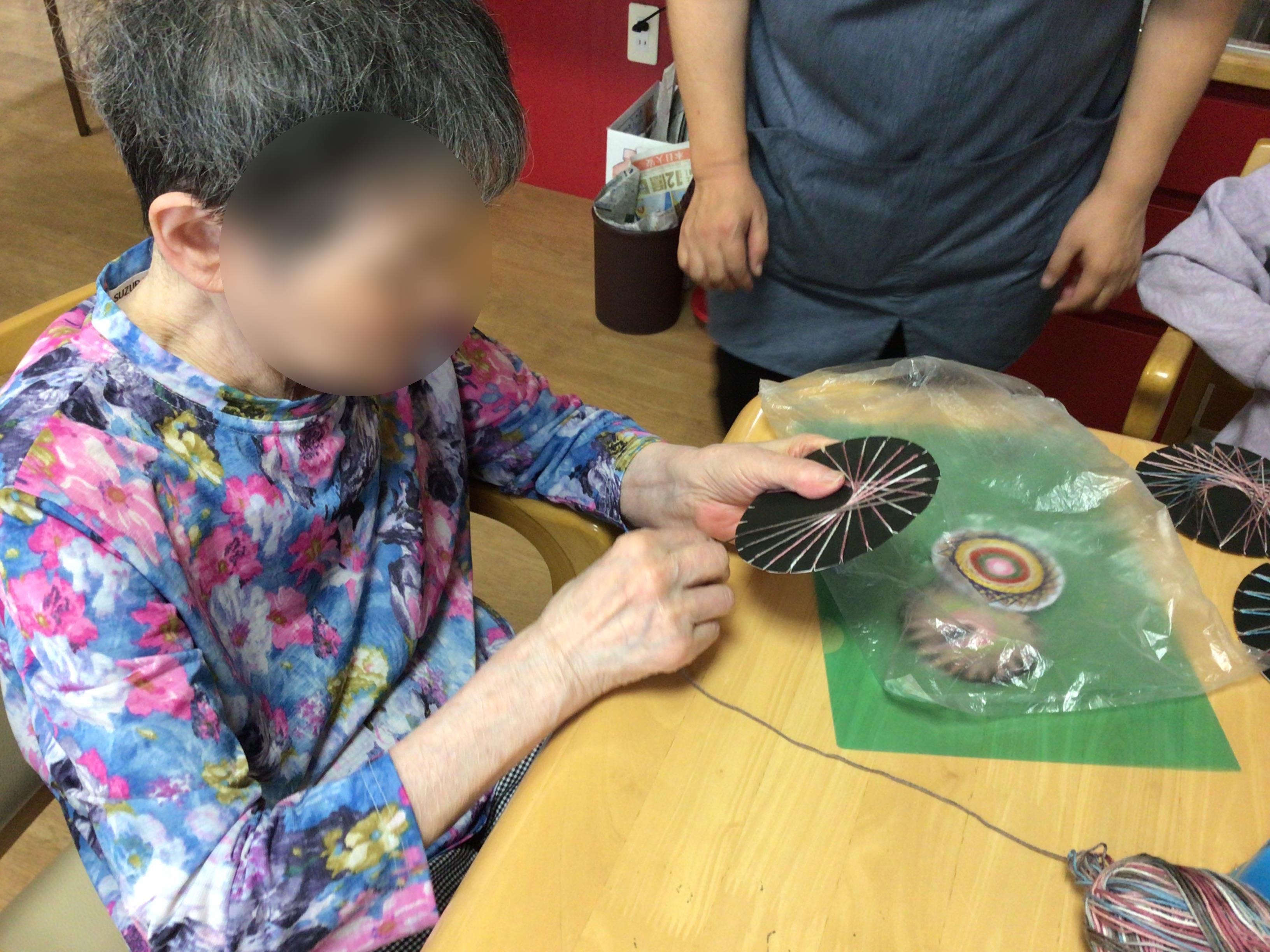 スタッフと一緒に糸掛けアートに挑戦されました