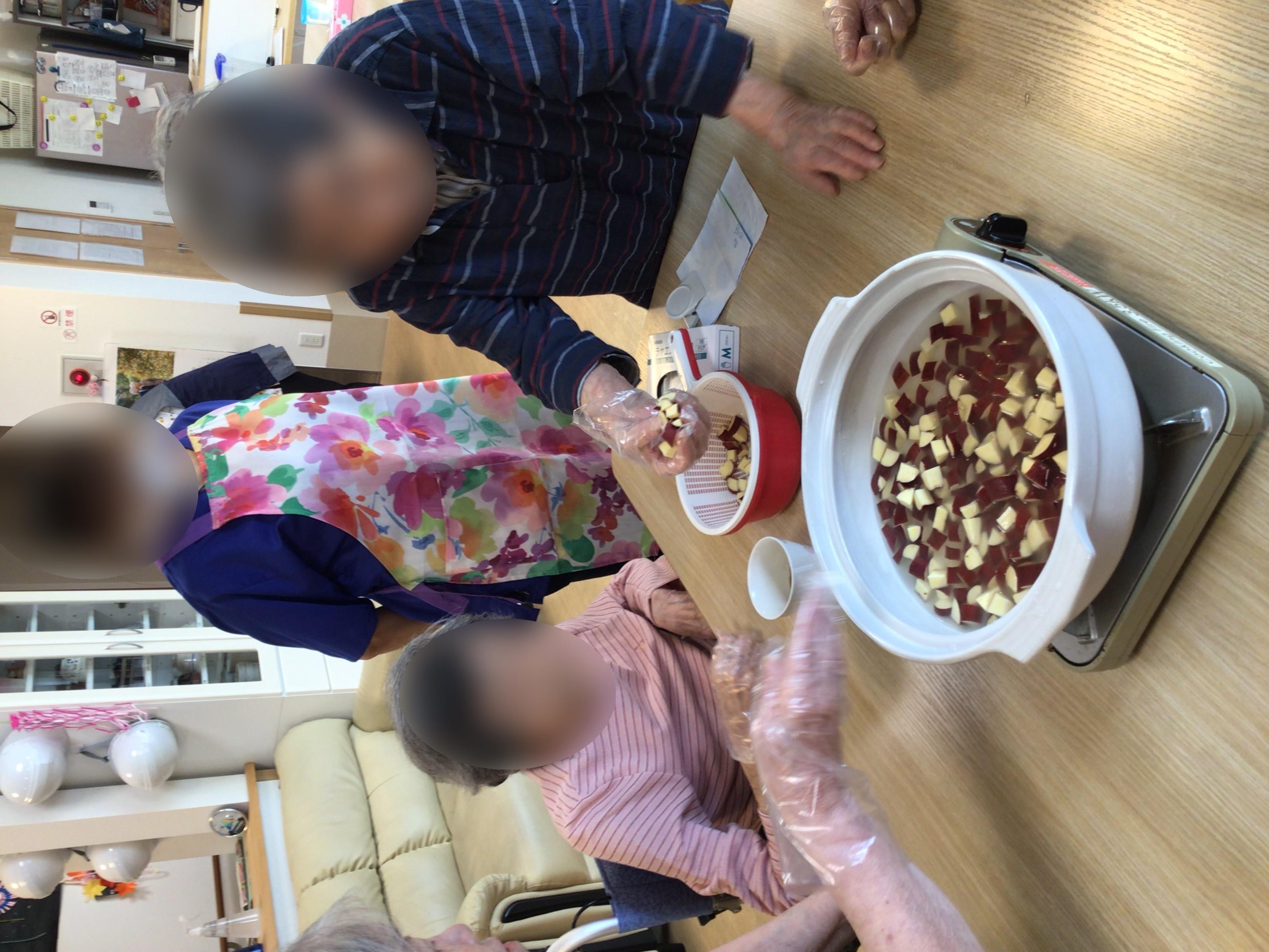 本日のお昼は、災害時の訓練も兼ねて土鍋を使って秋の味覚さつまいもご飯を