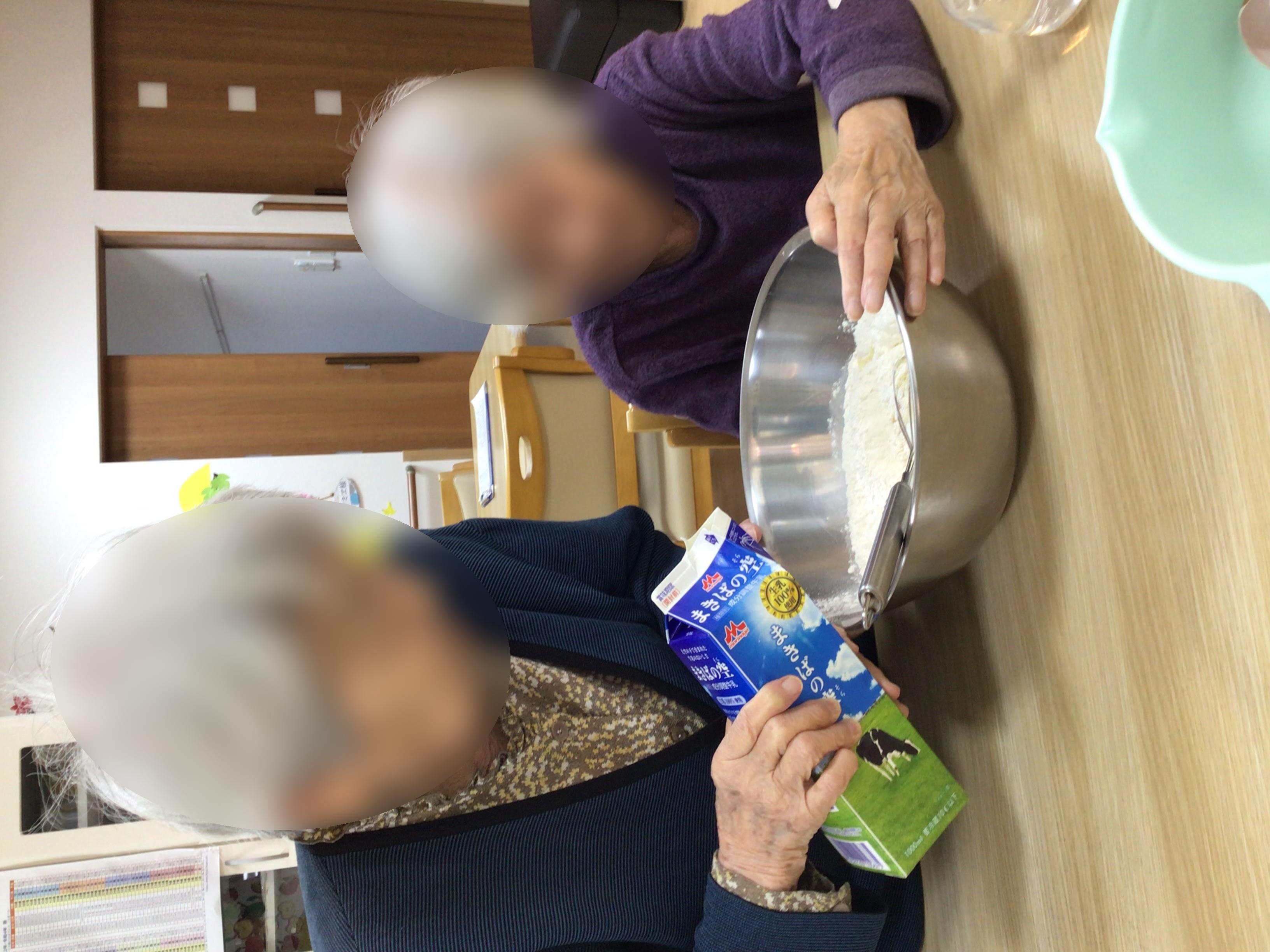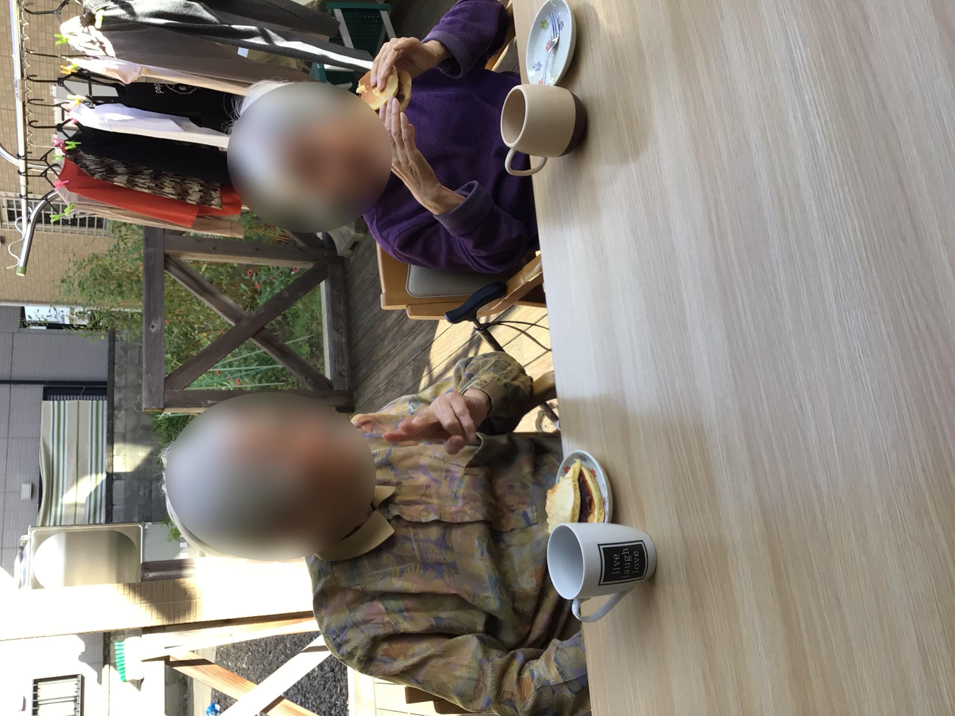 お誘いしお茶のお供にどら焼き作りを手伝っていただき準備完了です