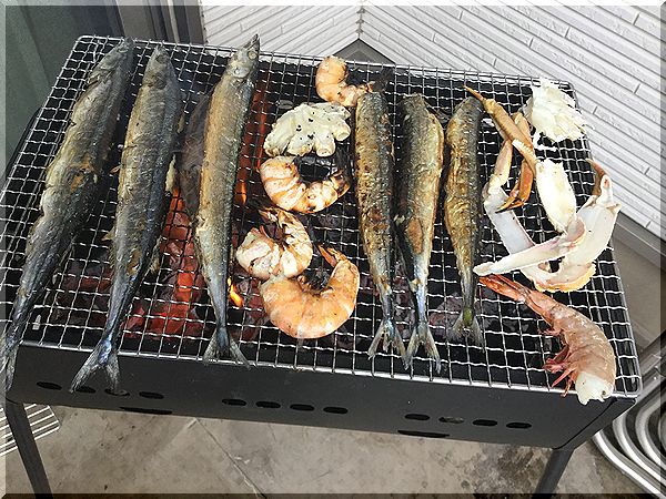 テラスで秋刀魚などを炭焼きにしました!
