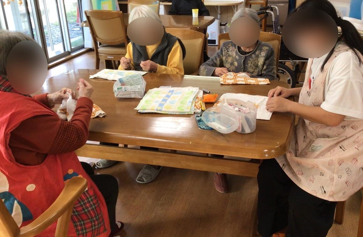 午後、職員と一緒に縫い物をされているご利用者様の様子です