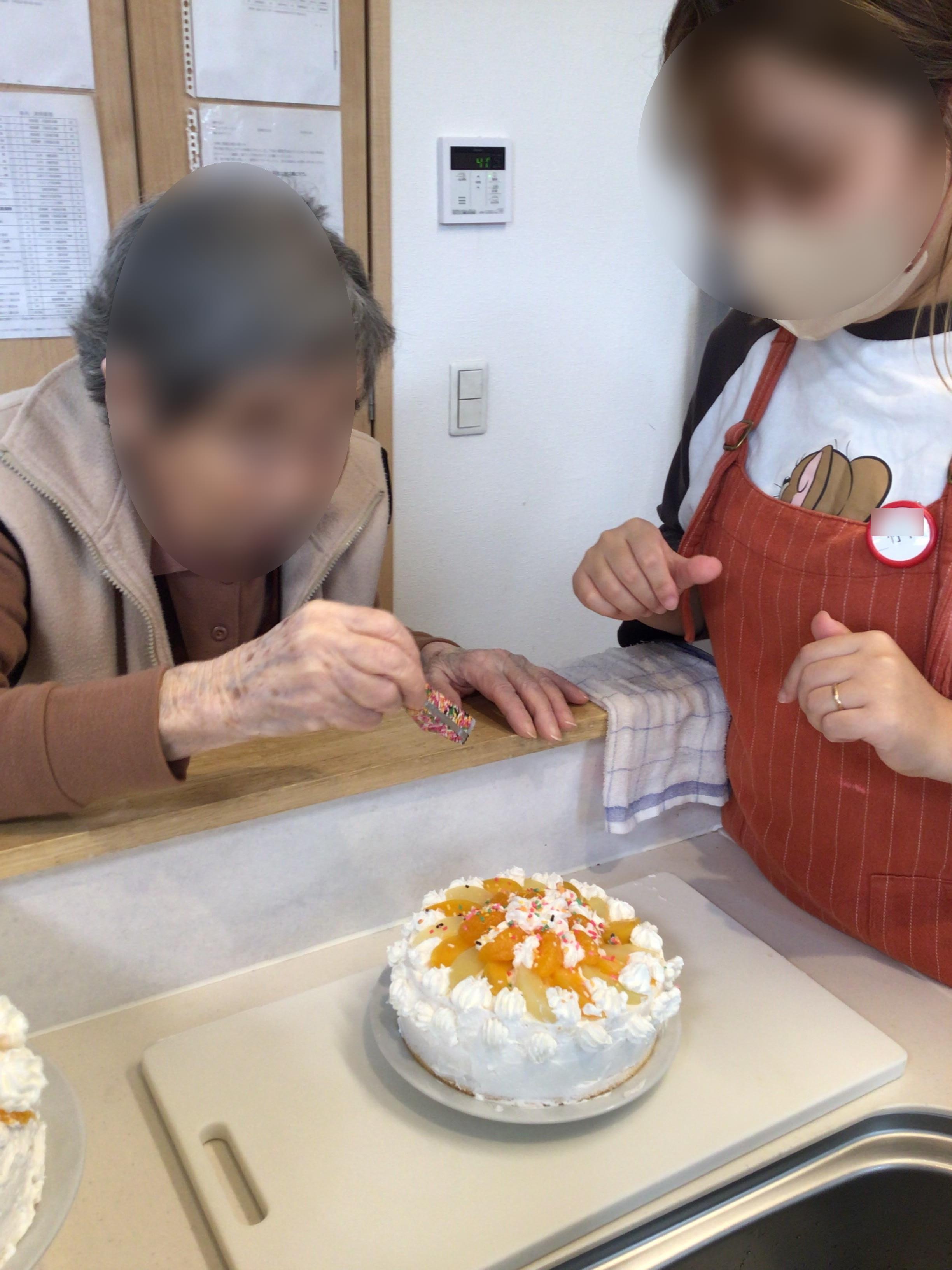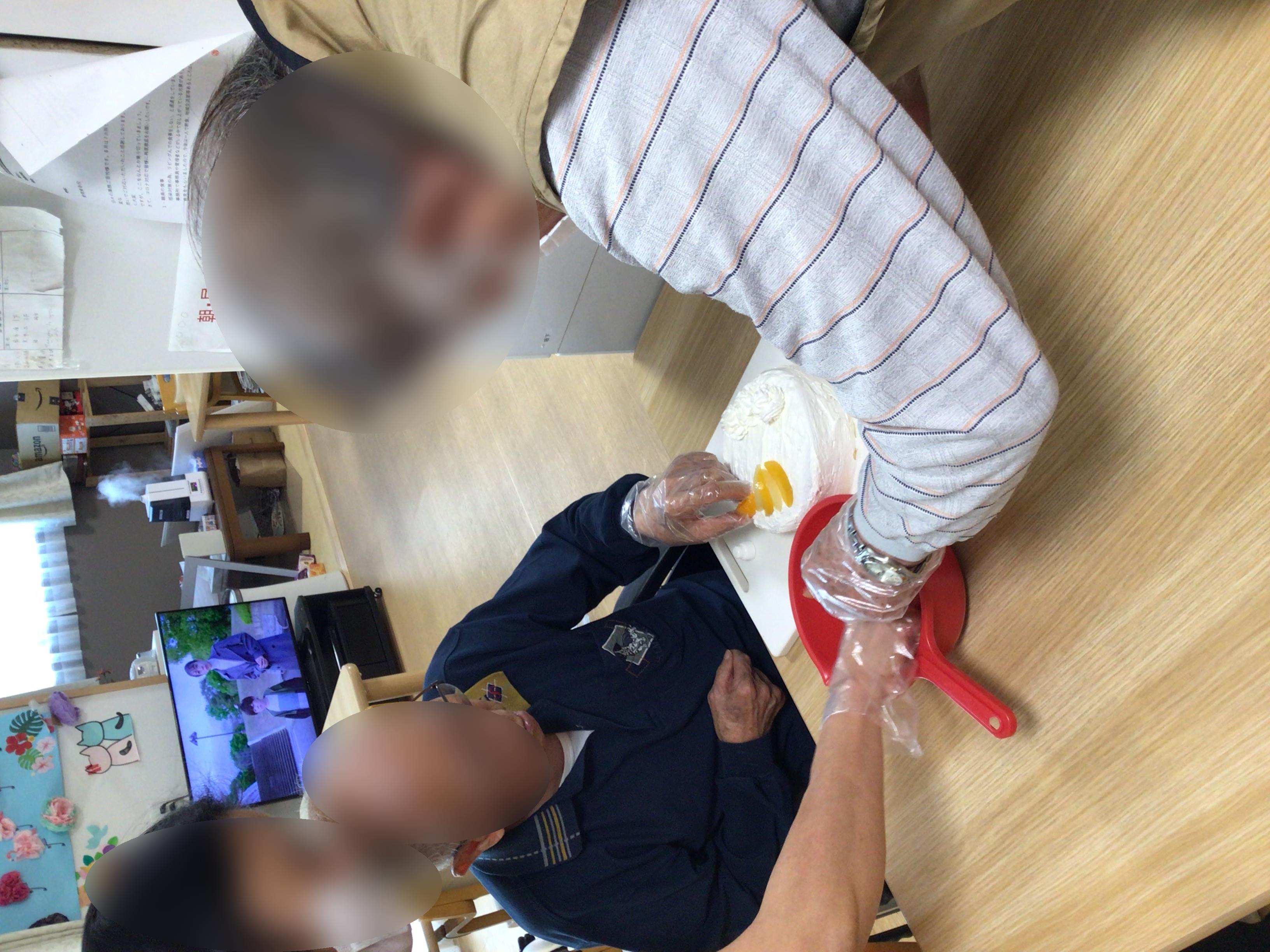 おやつの時間にはケーキをお出しする為男性ご利用者様とスタッフで