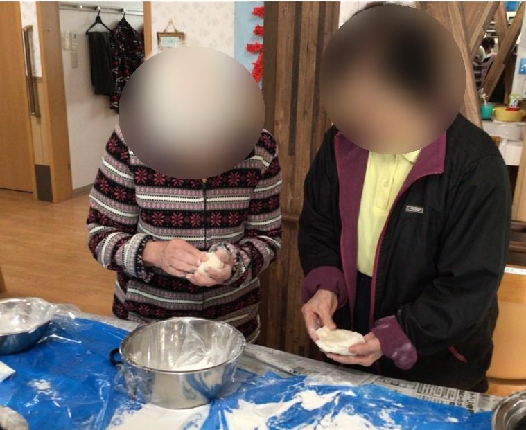 最初は職員がもちをつく姿をご利用者様に見ていただき、