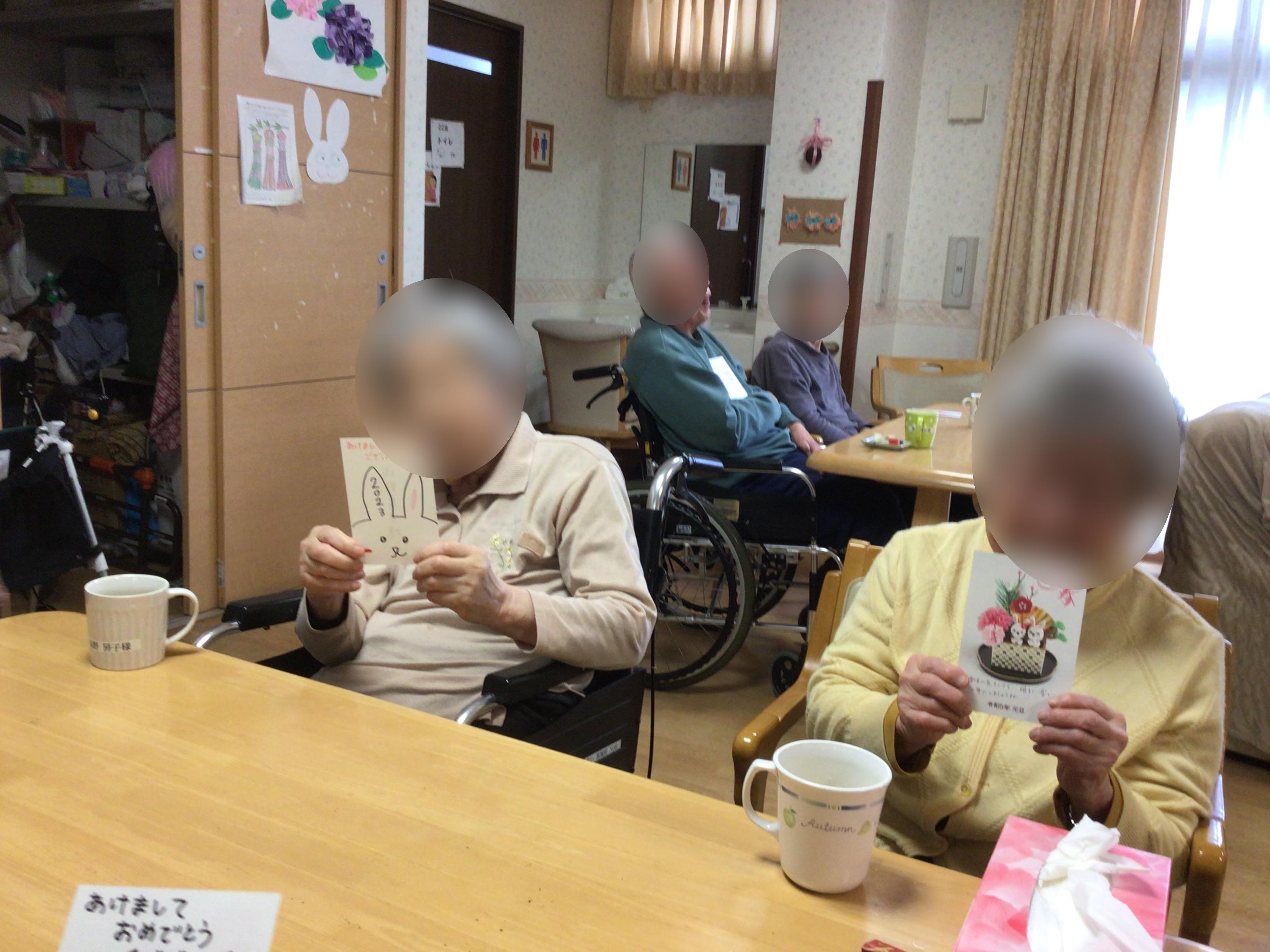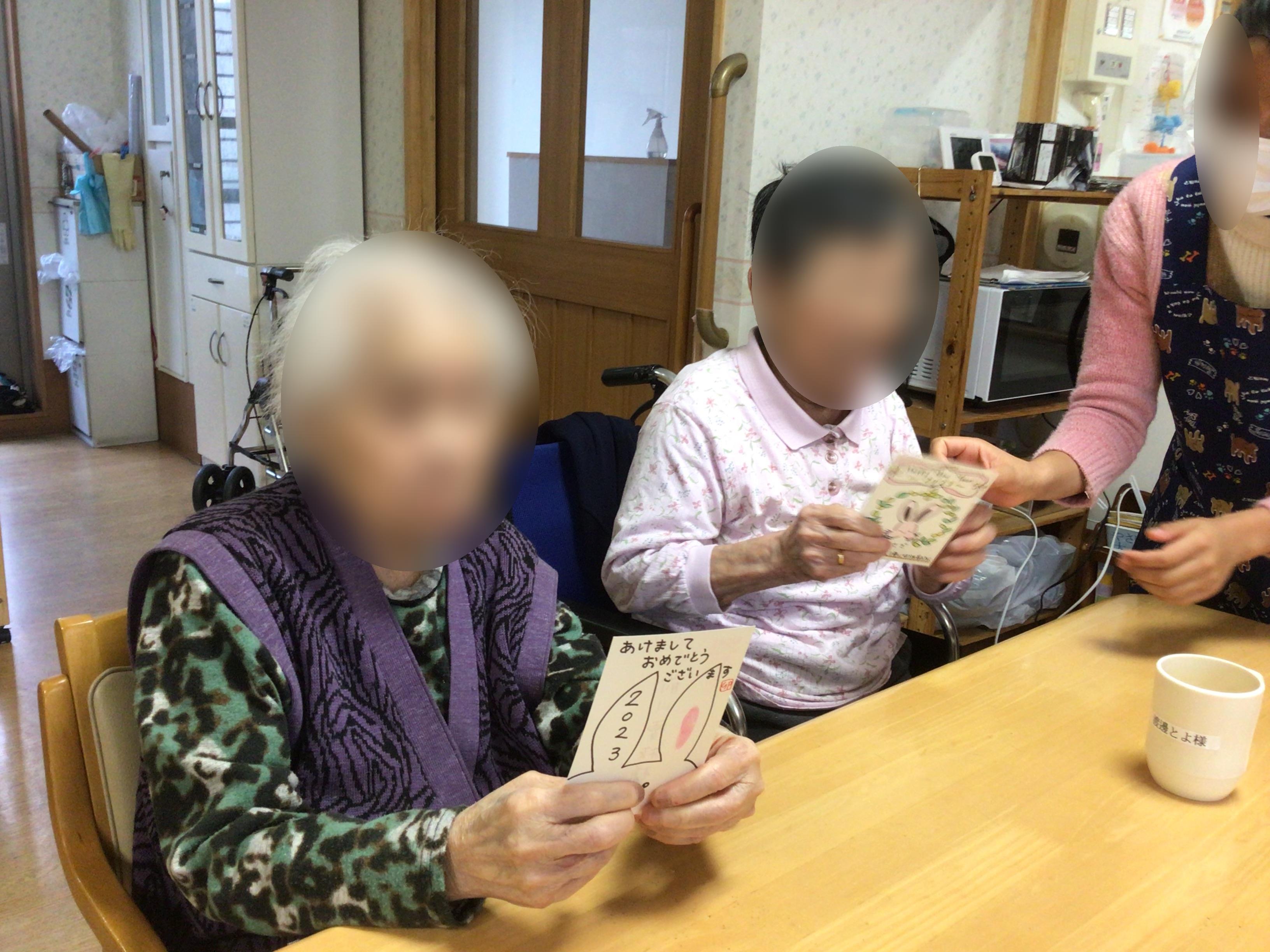 おやつ後は、スタッフからの年賀状をお配りしました