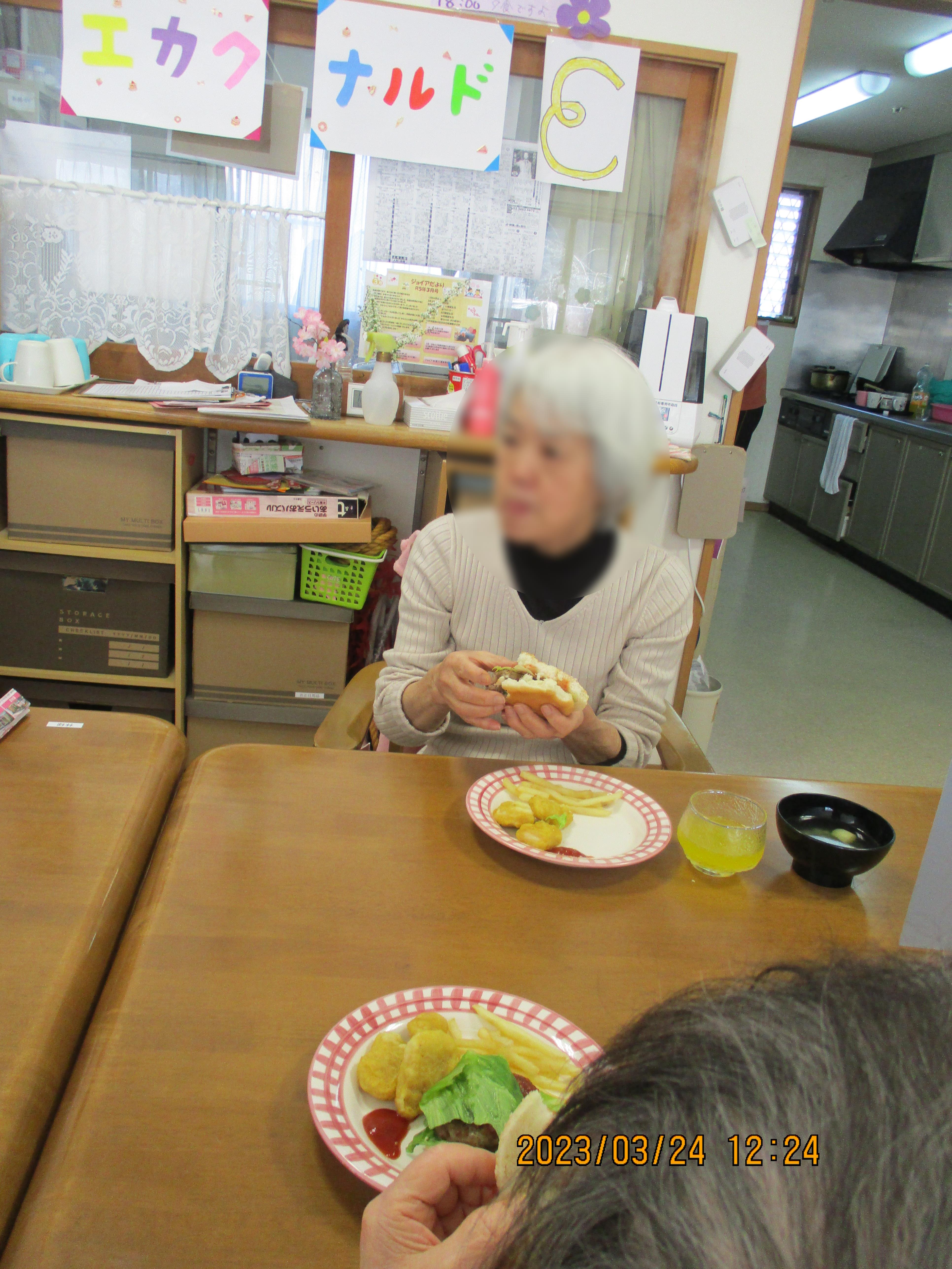 ハンバーガーとナゲット、ポテトをお出ししました